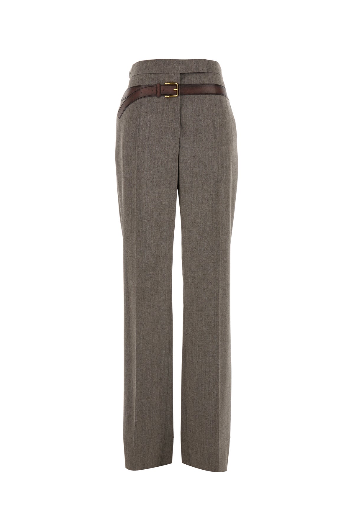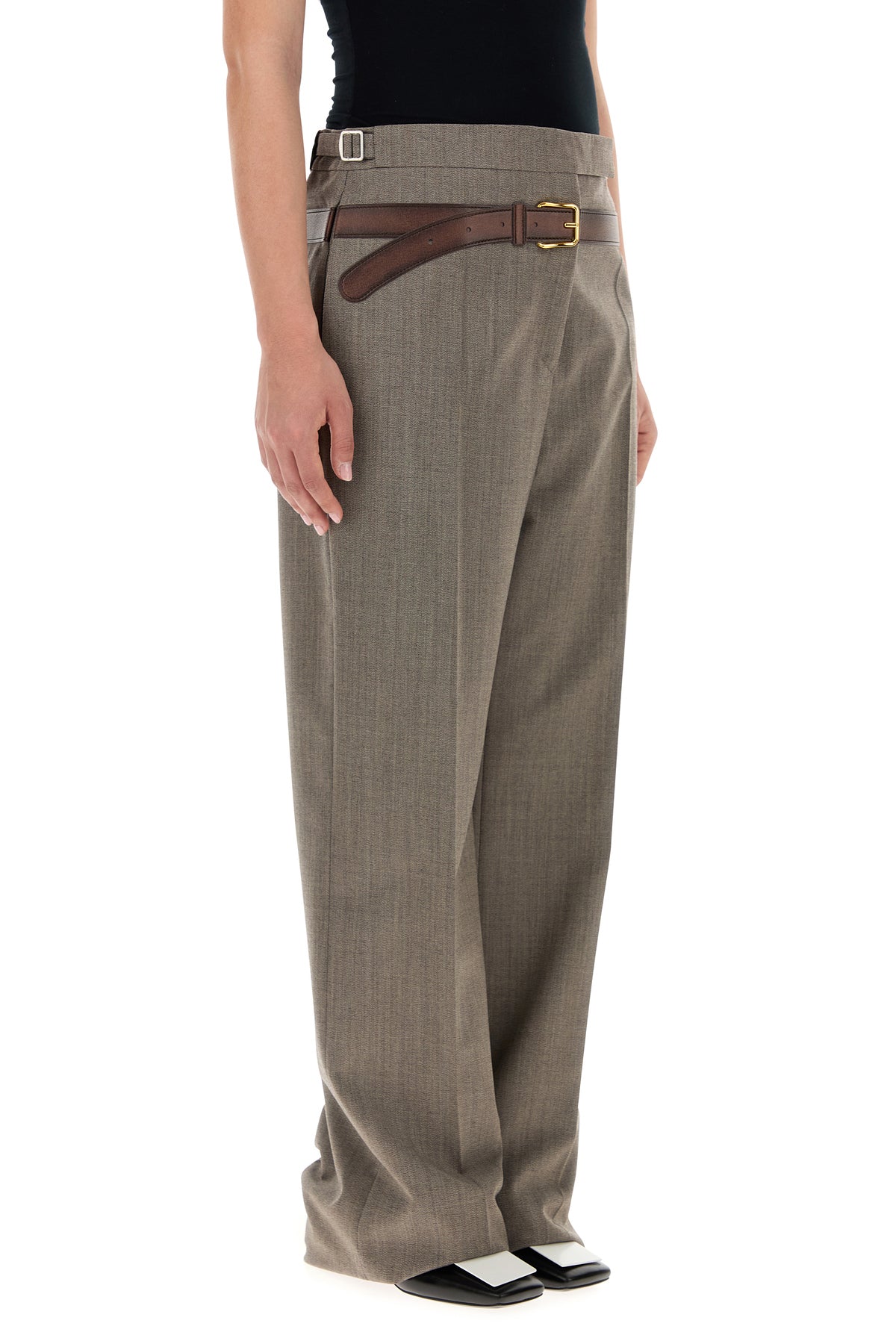 Pant realized in tech wool enriched by 3D printed belt at the top.