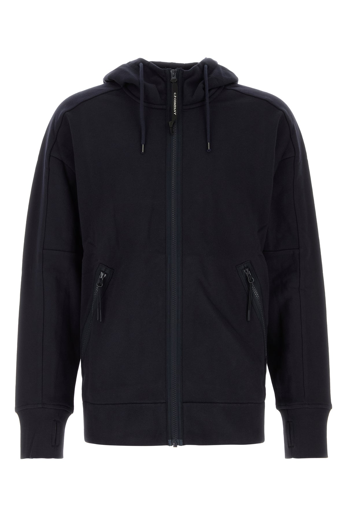 Sweatshirt realized in pure cotton enriched by peculiar patches on the drawstring hood.