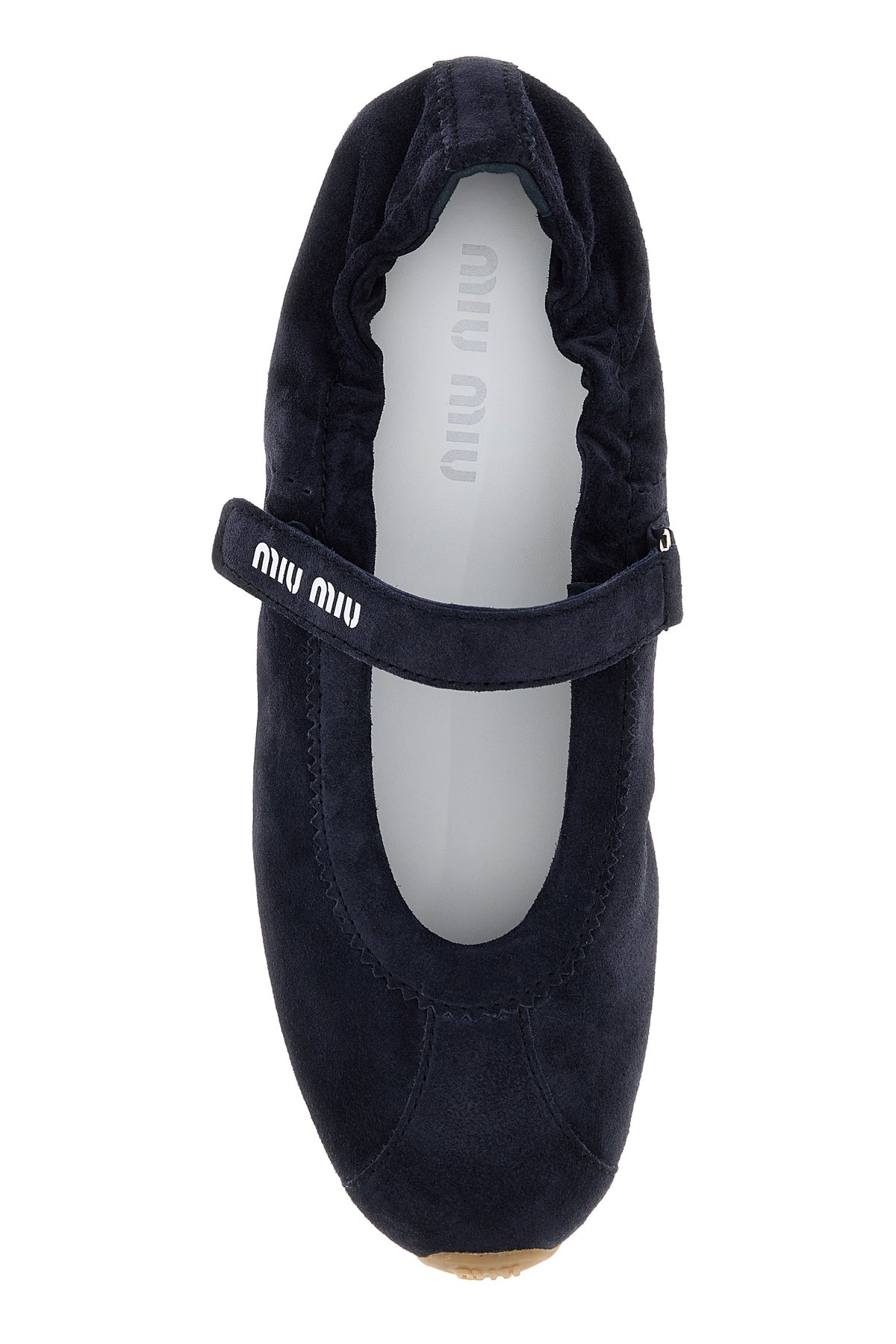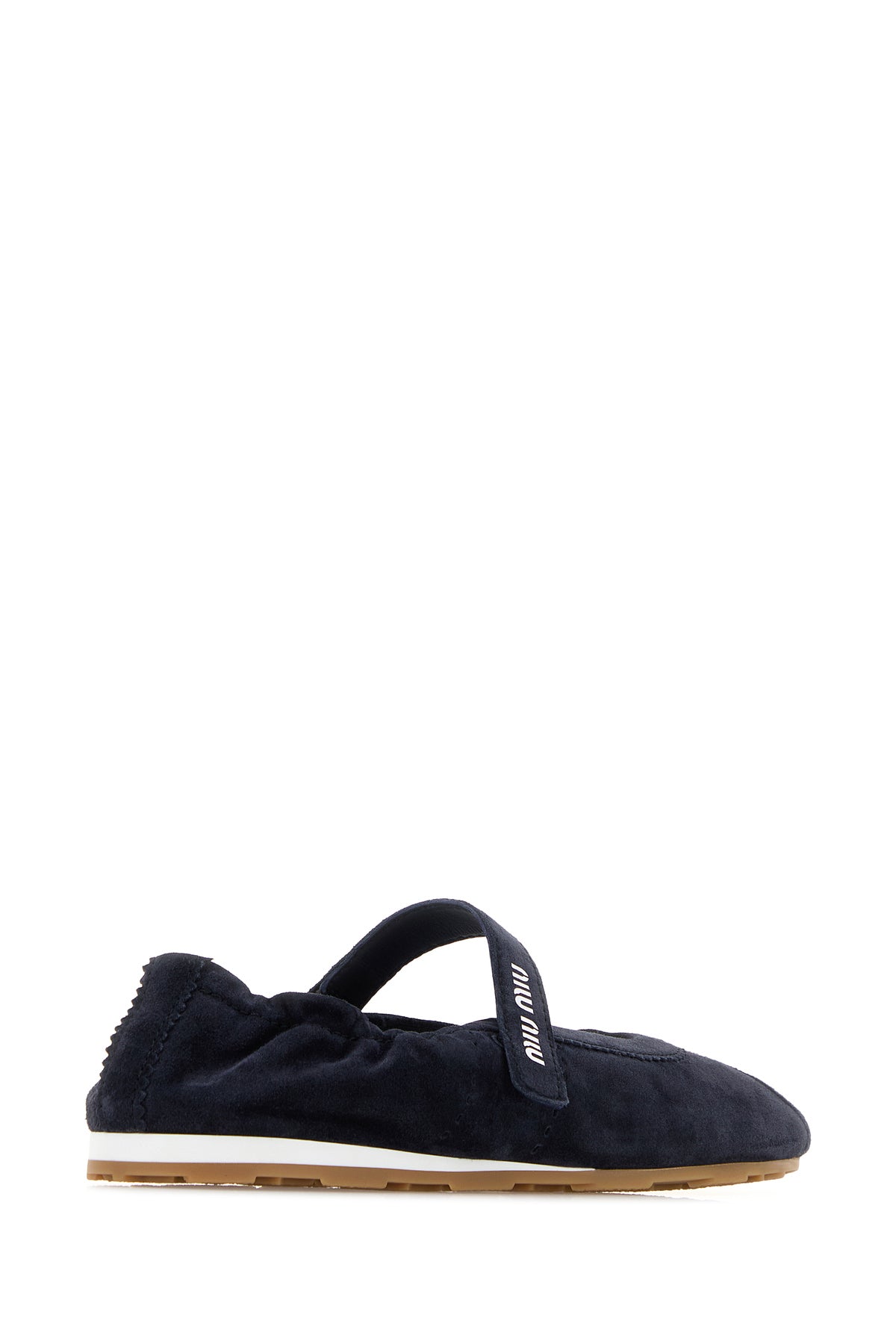 Ballerinas realized in suede characterized by contrasting printed logo on the strap on the instep.