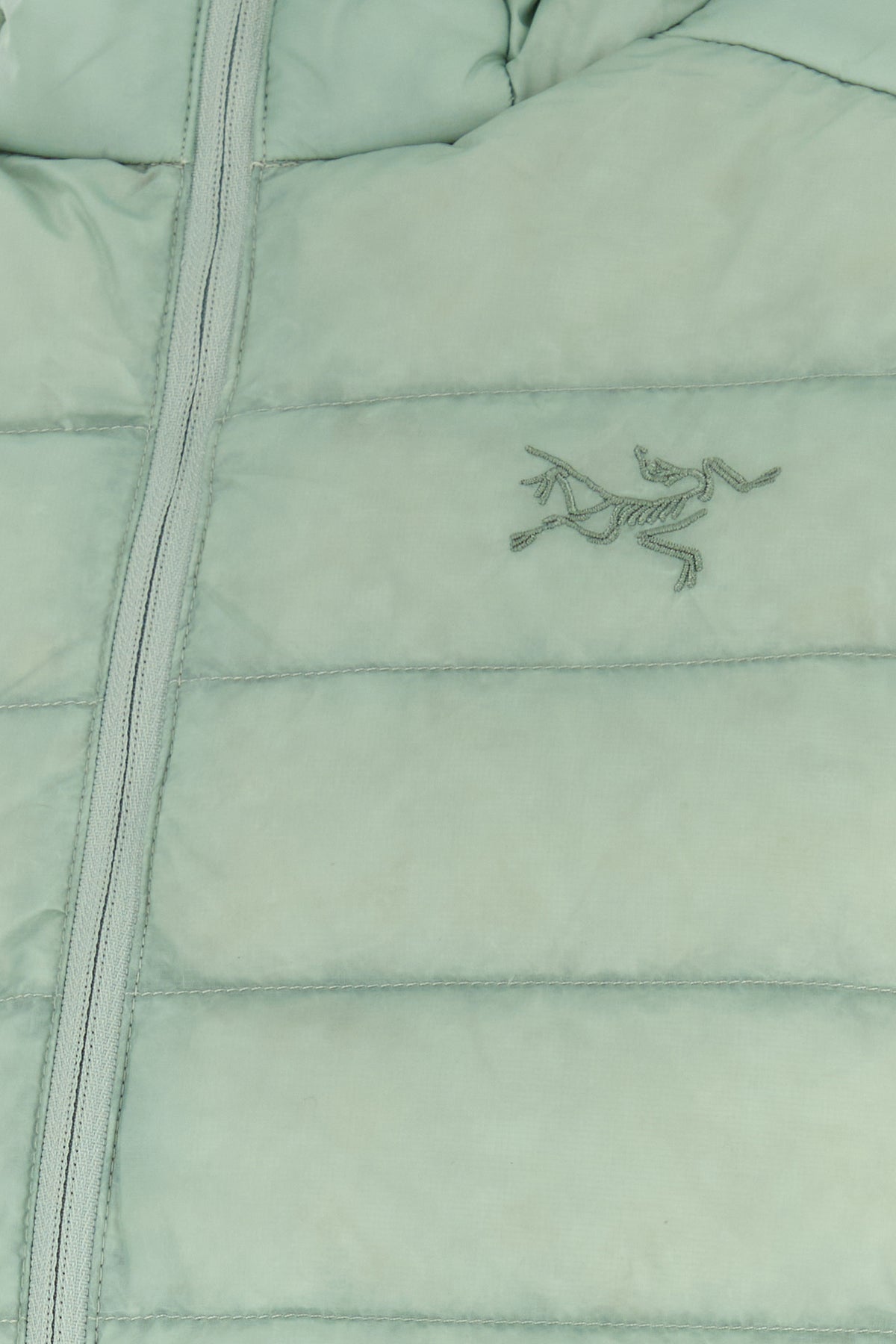 Padded jacket realized in quilted nylon characterized by contrasting embroidered logo on the chest and the hood.