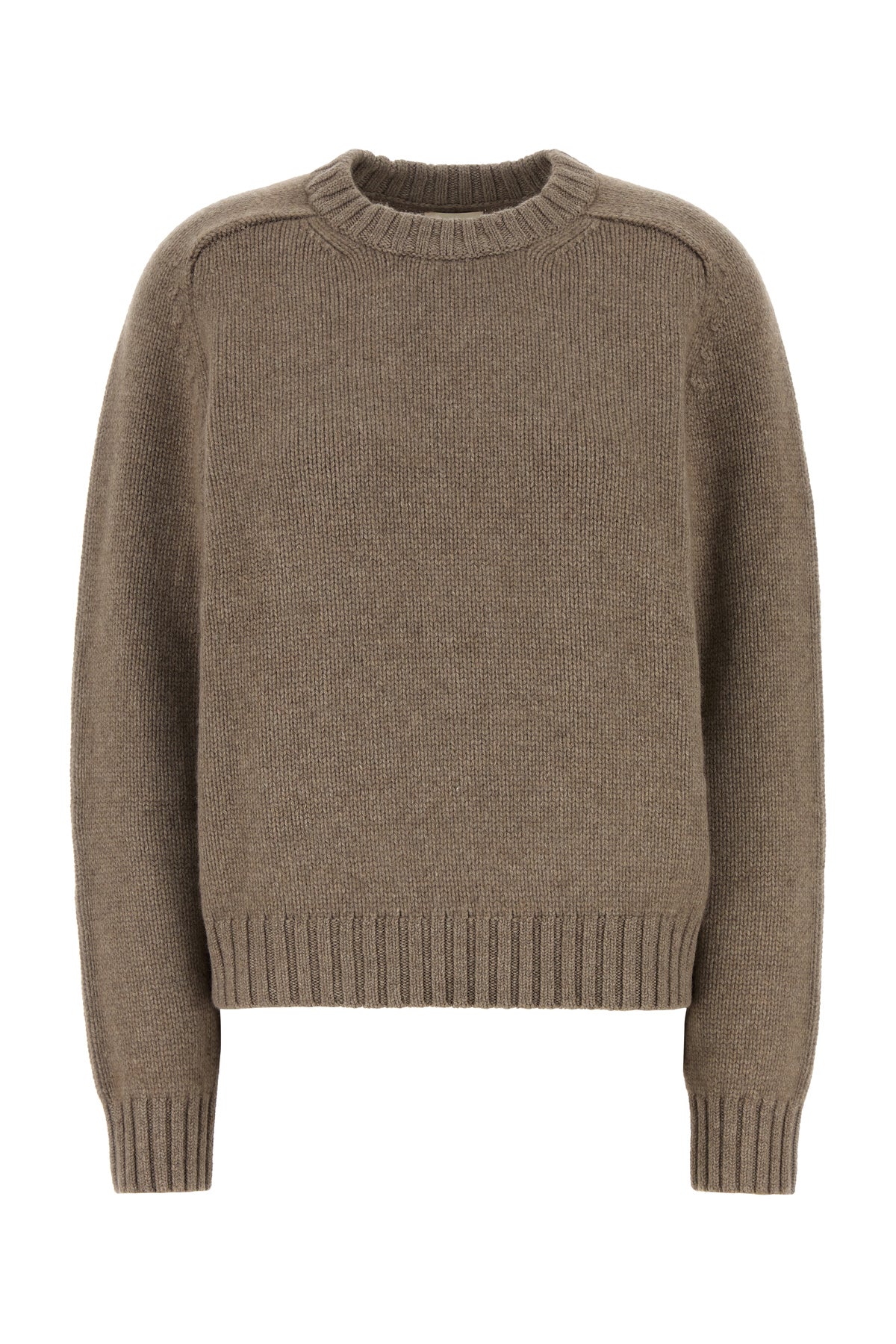 Sweater realized in pure cashmere characterized by ribbed crew-neck, cuffs and hemline.