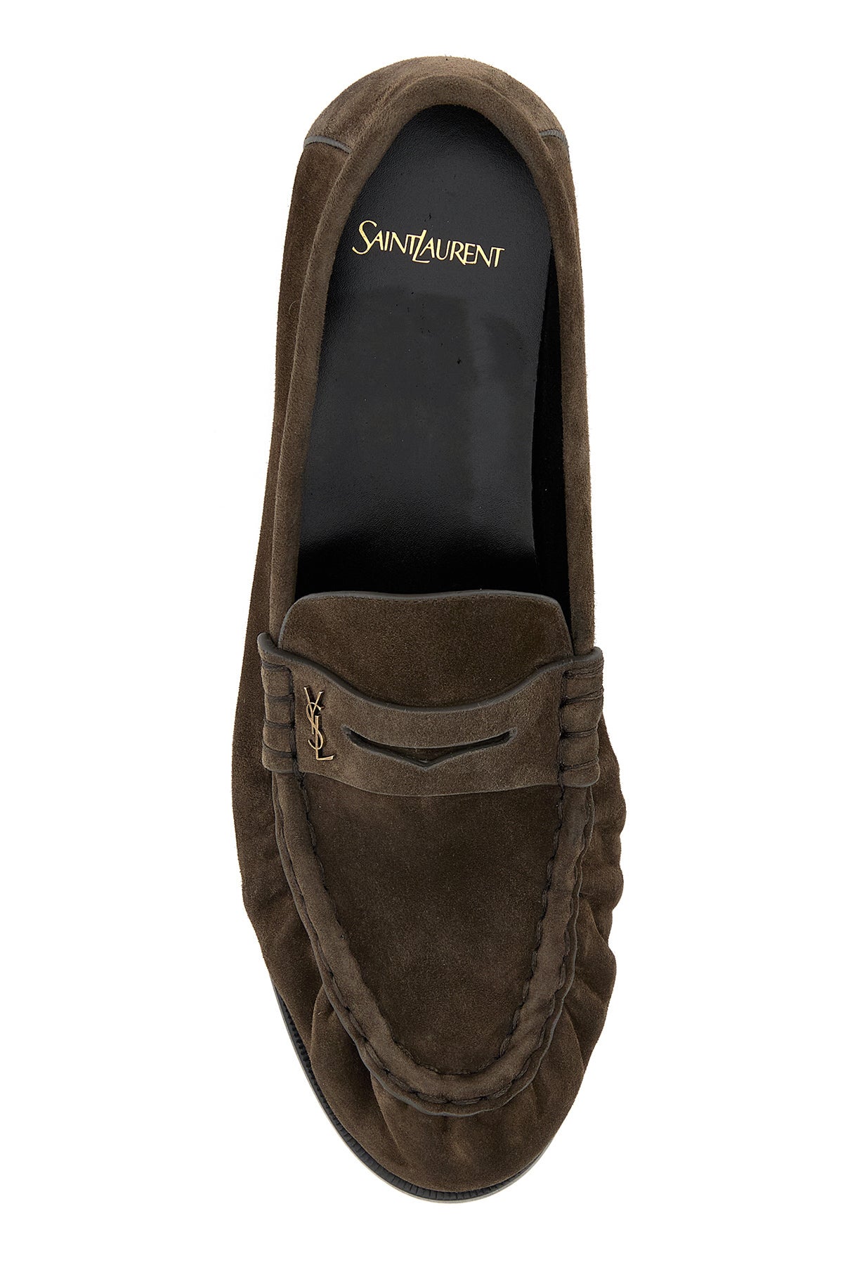 Loafers realized in suede enriched by iconic Monogram metal detail on the vamp.