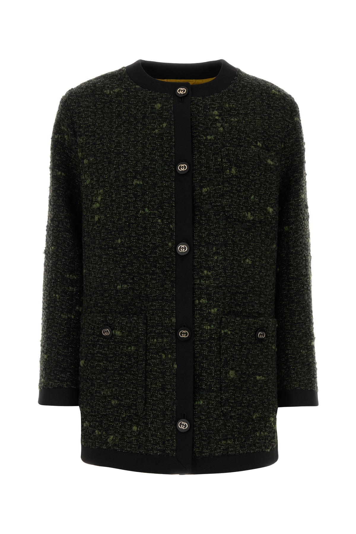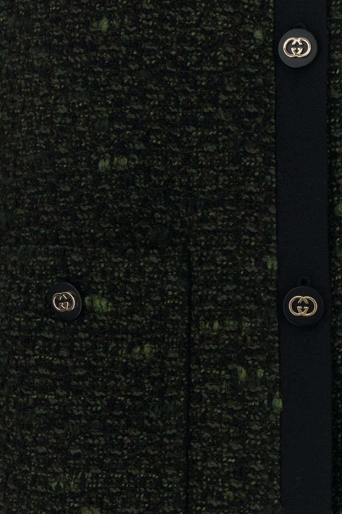 Overcoat realized in boucle characterized by Incrocio GG buttons closure.