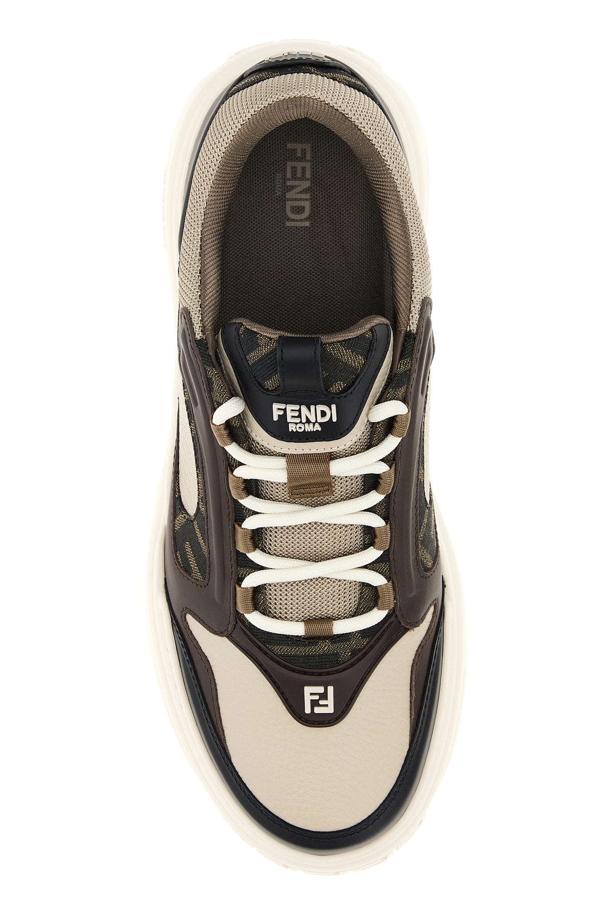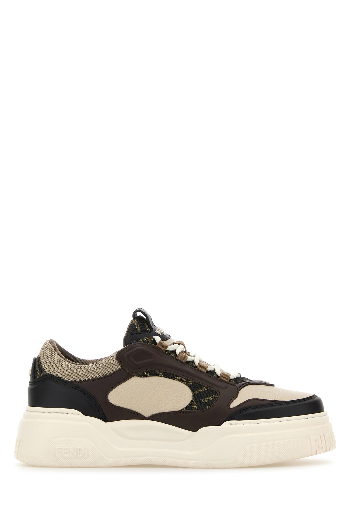 Sneakers realized in leather and canvas characterized by logo in relief on the sole enriched by rubberized logo on the toe and at the back.