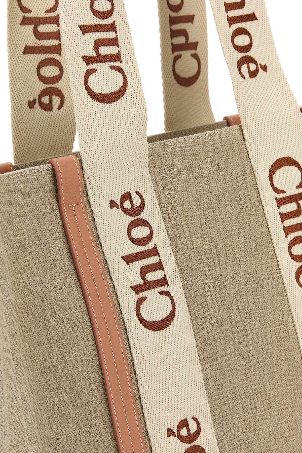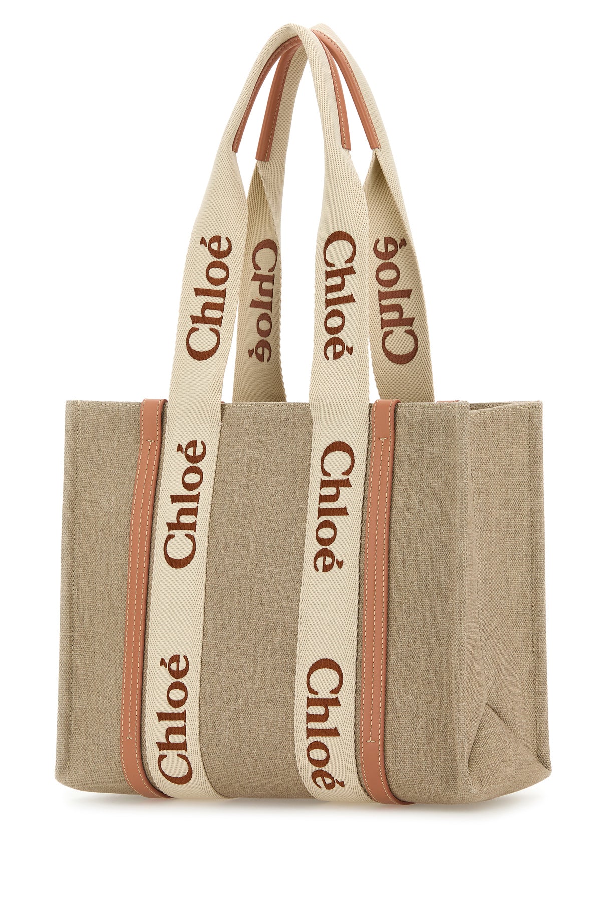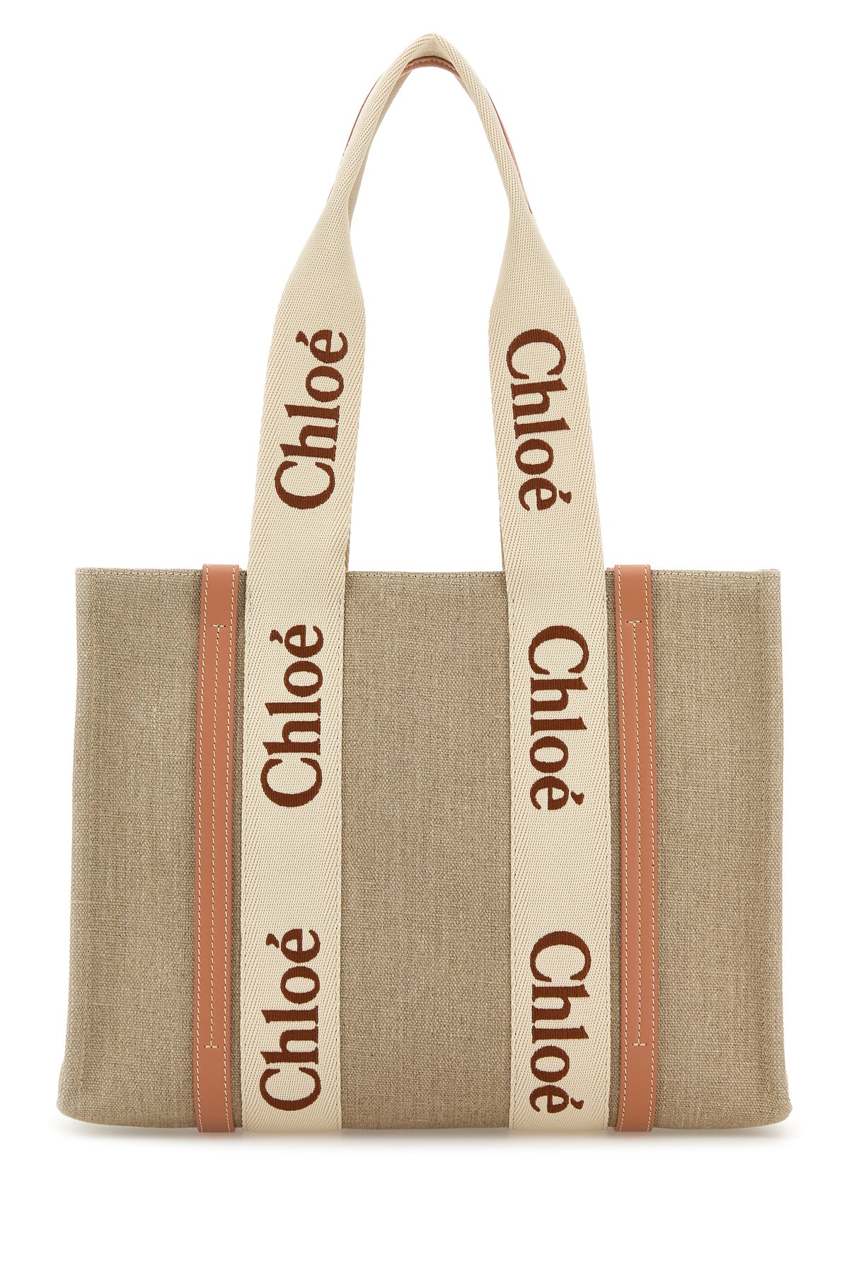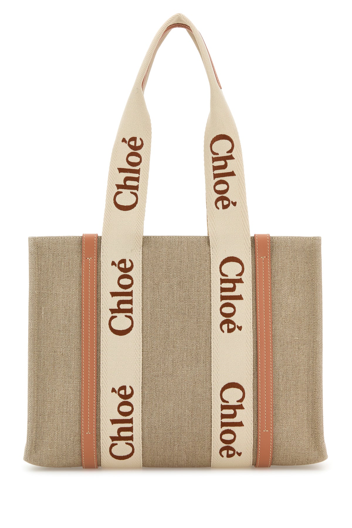 Shopping bag realized in pure linen with leather inserts enriched by logoed canvas bands at the front and at the back.