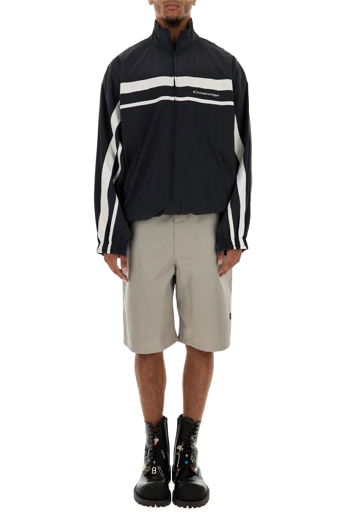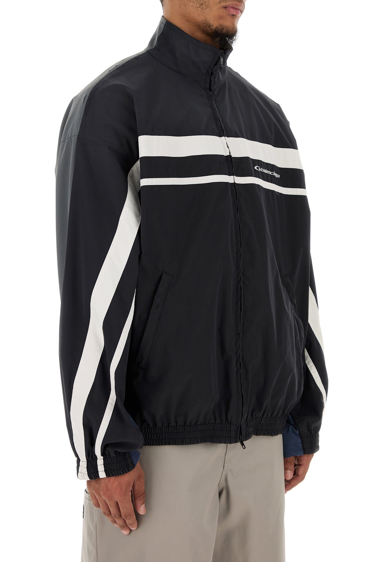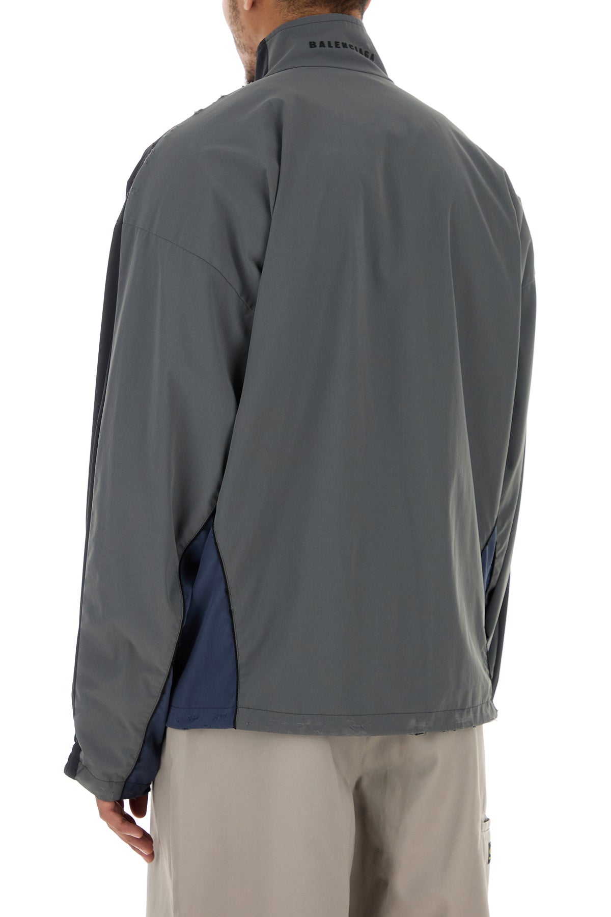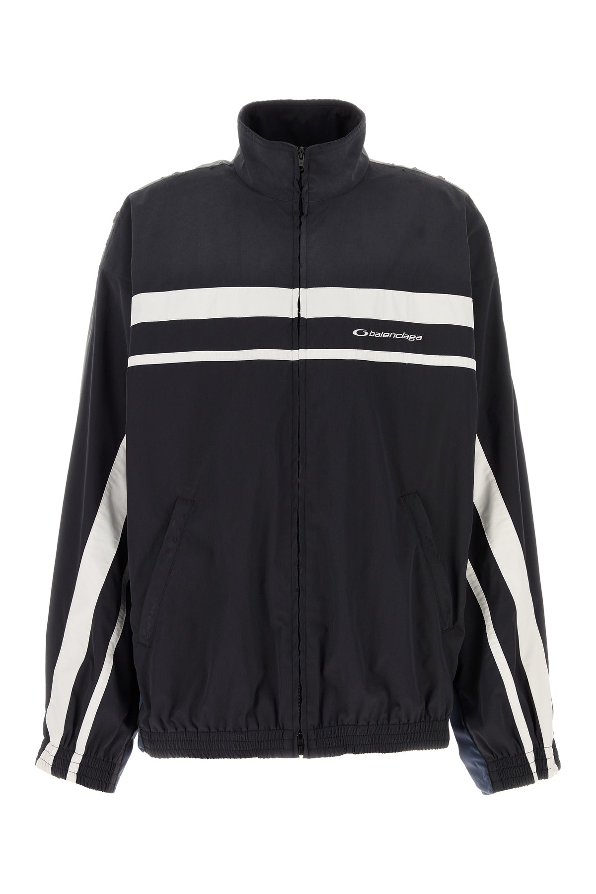 Oversize sweatshirt realized in slightly distressed tech fabric characterized by Balenciaga embroidery on the chest.