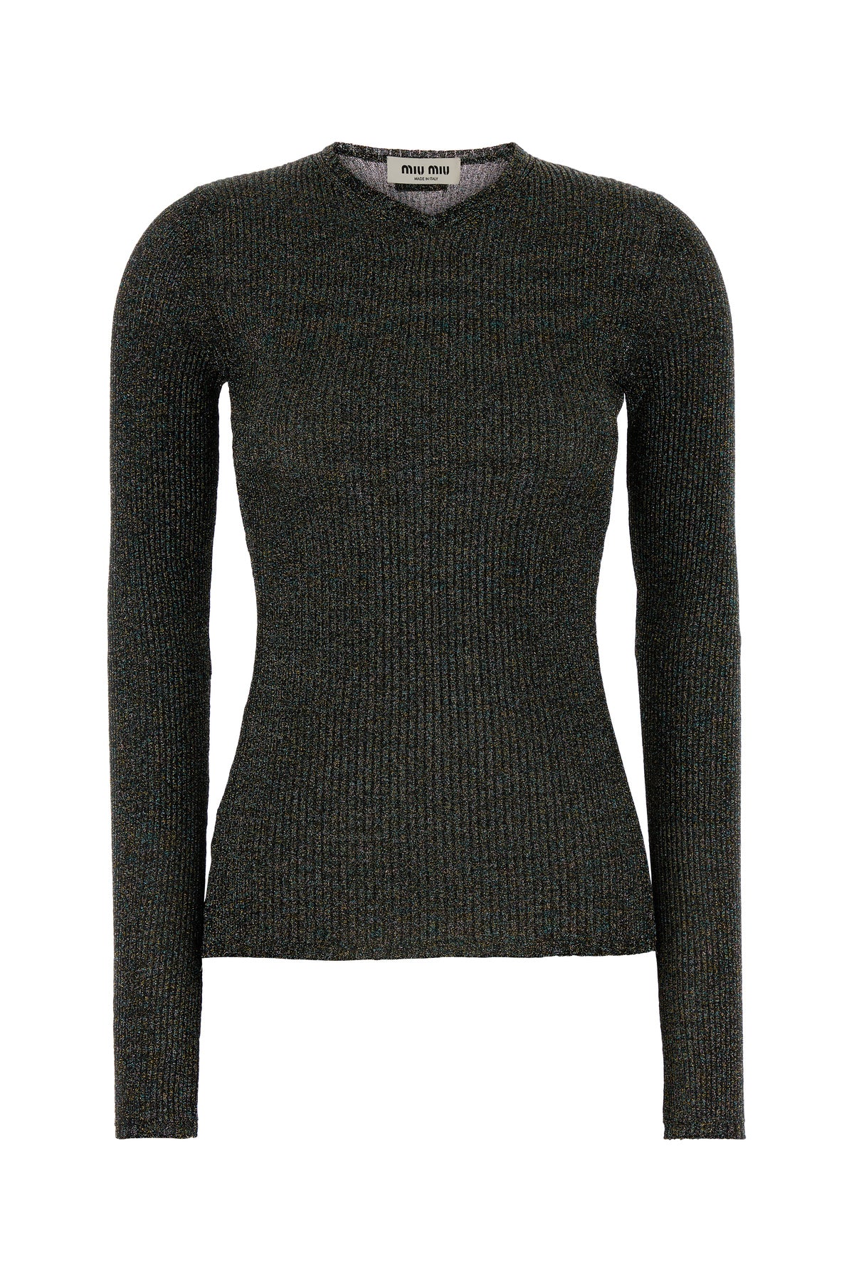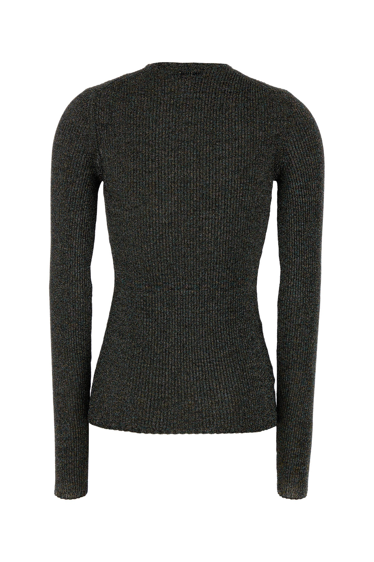 Long-sleeve top realized in viscose blend with lurex threads enriched by logoed label at the back.