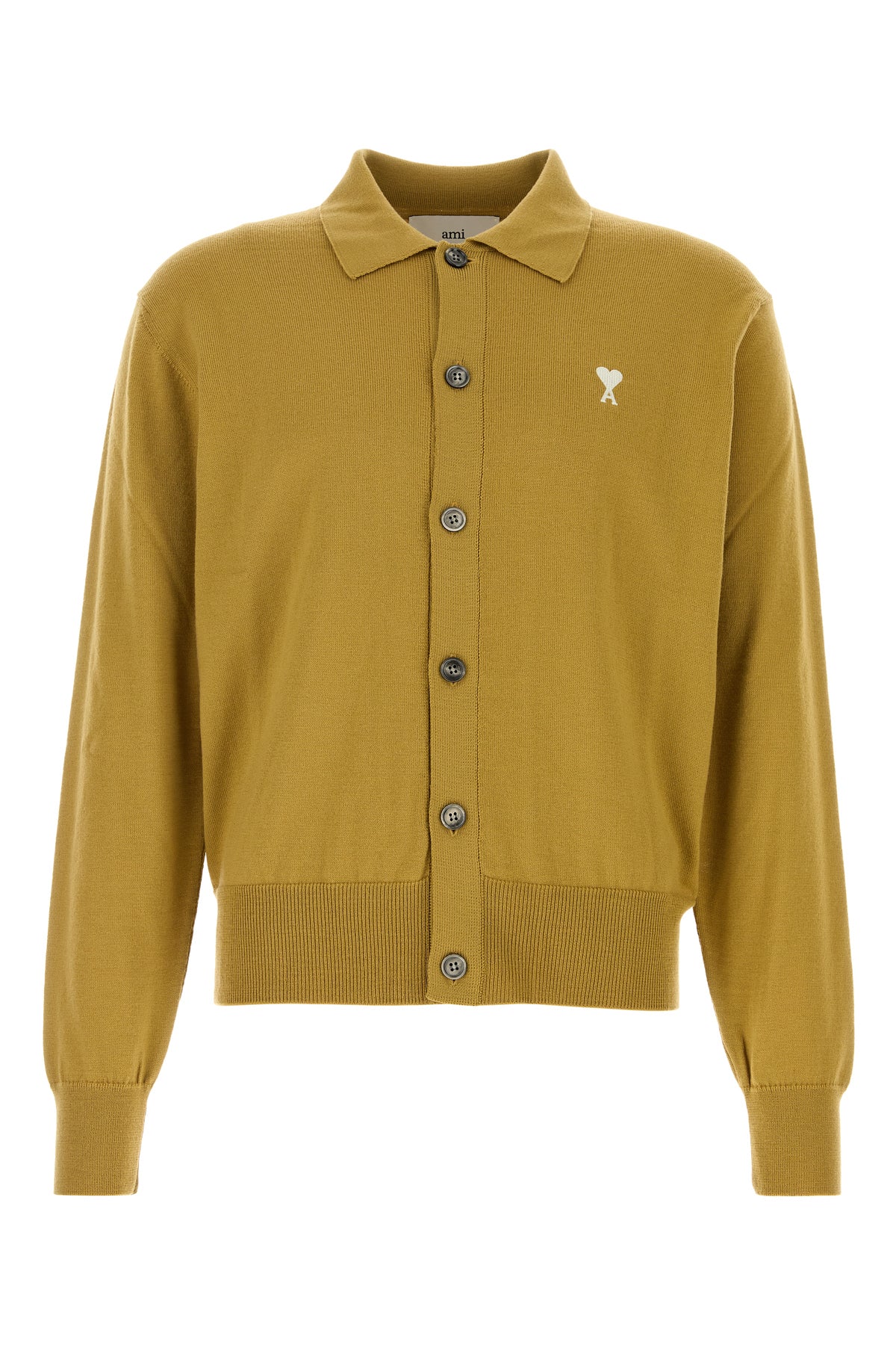 Cardigan realized in pure merino wool characterized by iconic contrasting Ami De Court embroidery on the chest.
