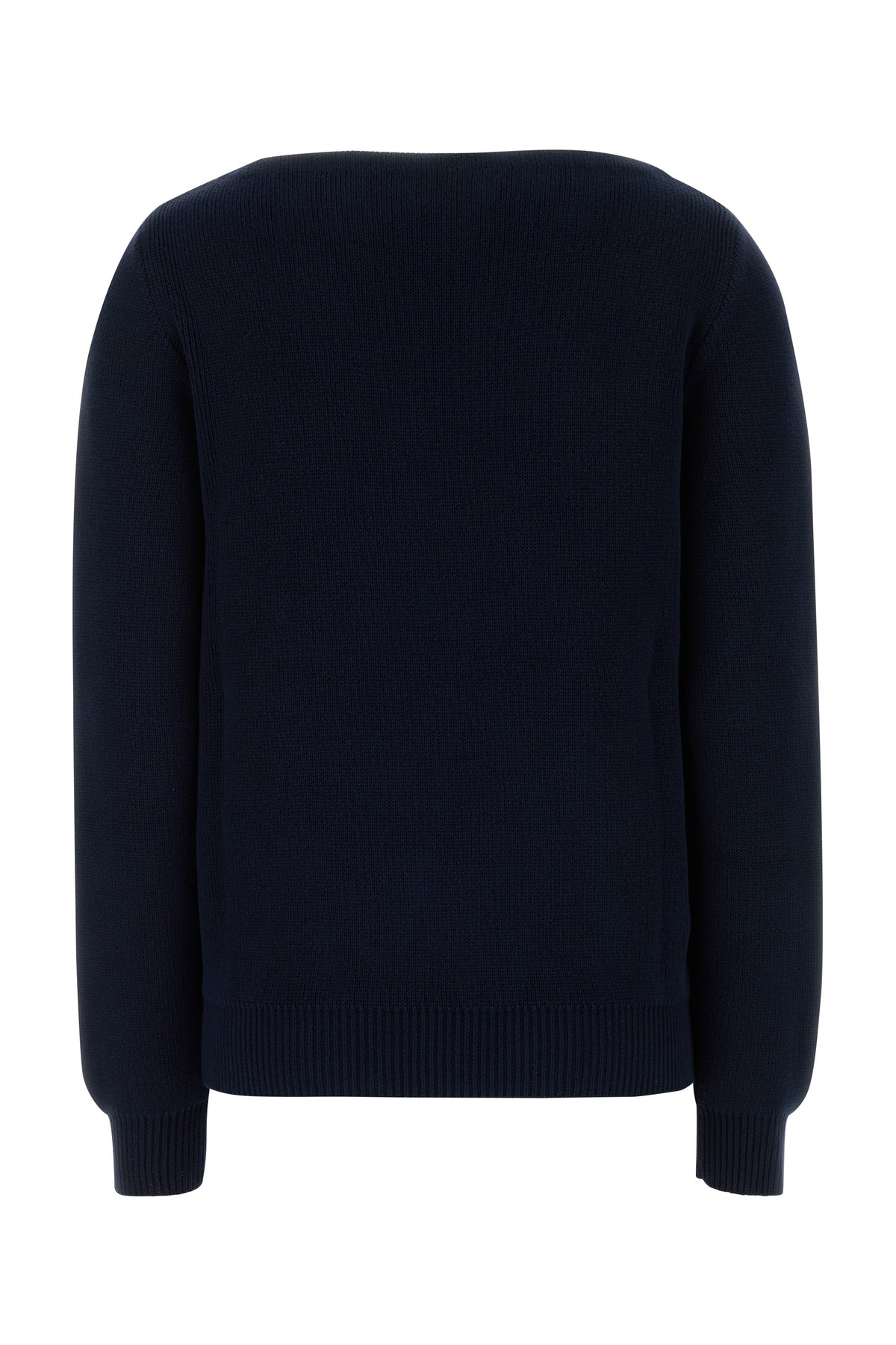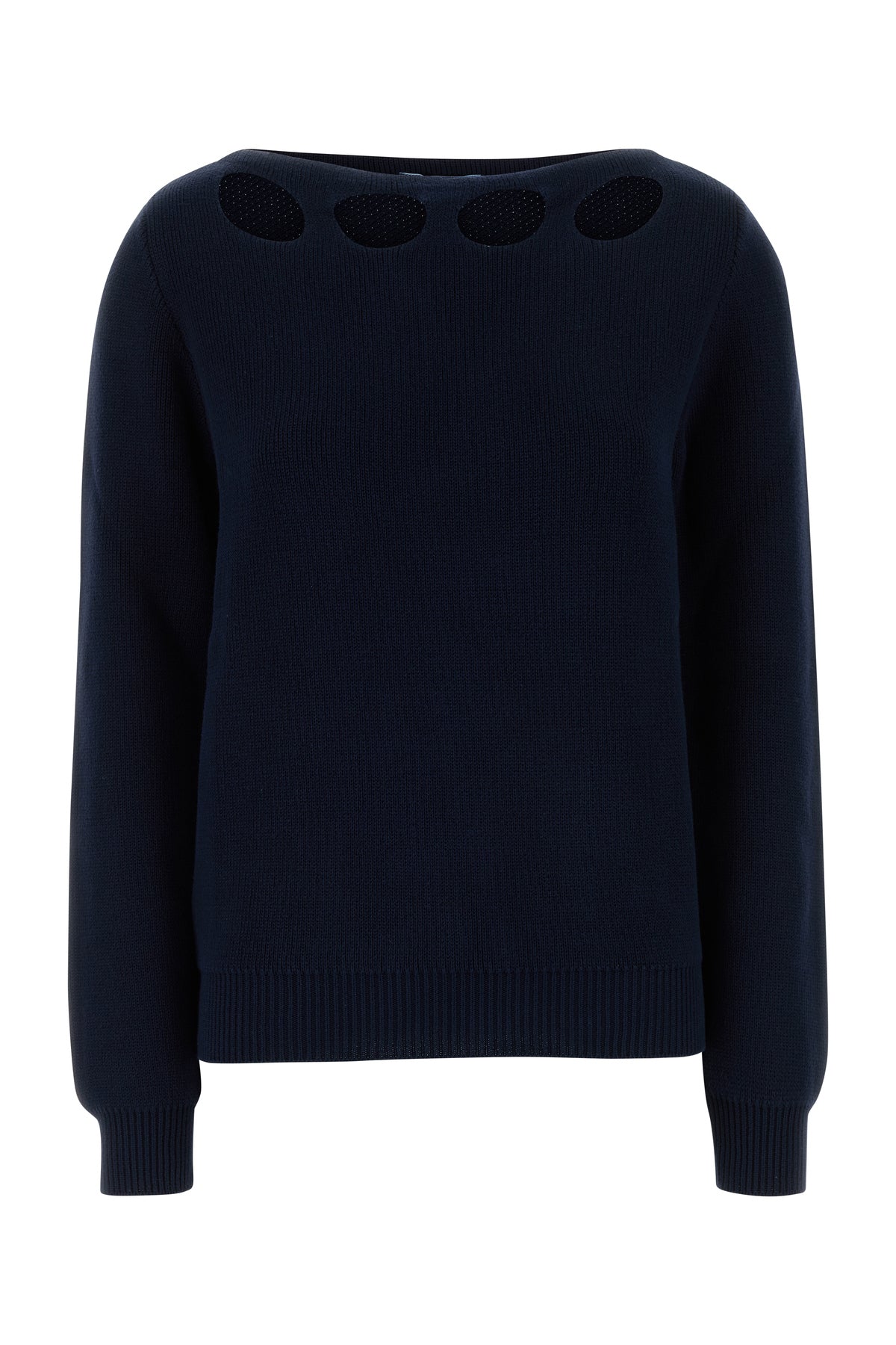 Sweater realized in pure cotton characterized by cut-out details on the boat neckline.