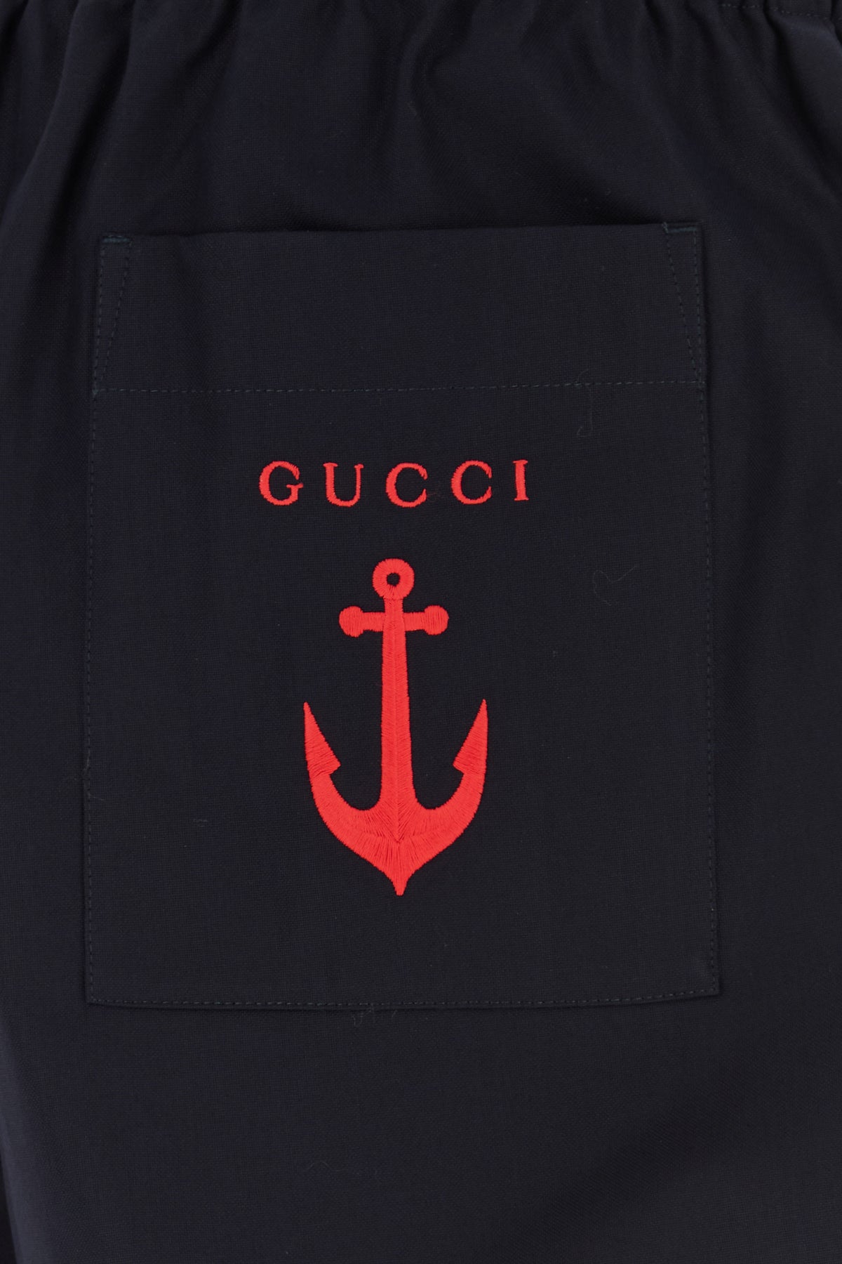 Bermuda shorts realized in pure cotton oxford characterized by Ancora Gucci embroidery at the back.