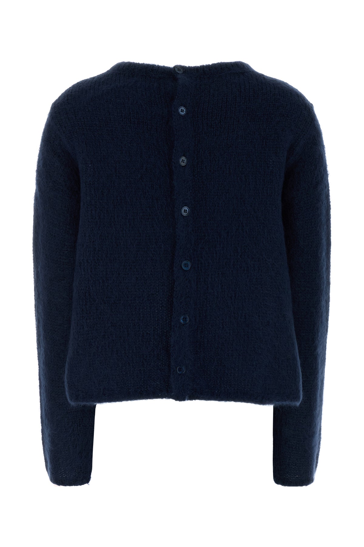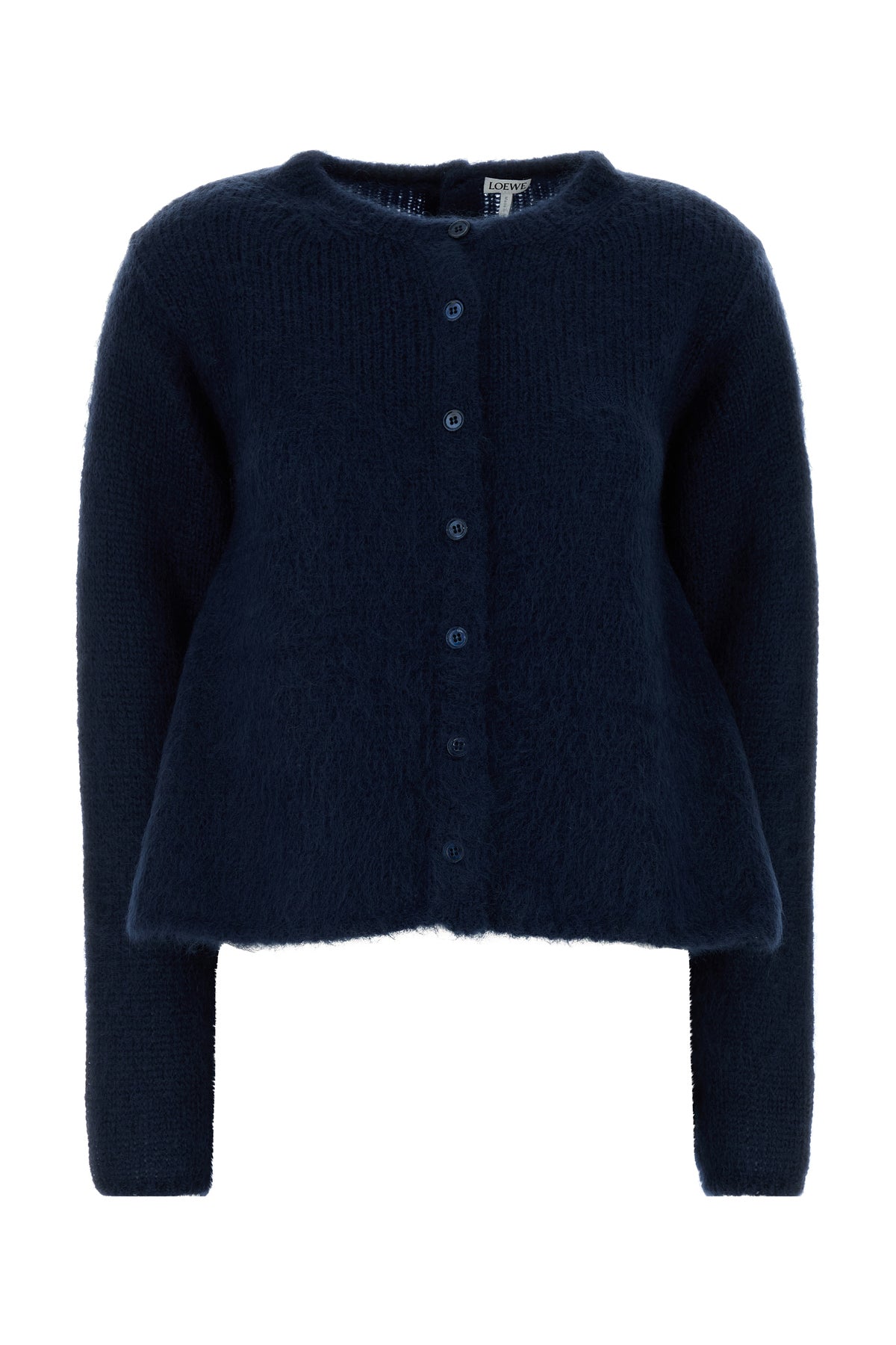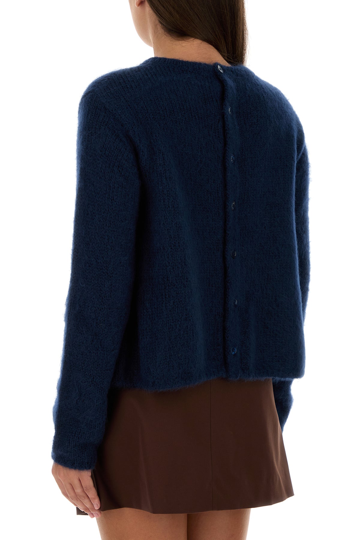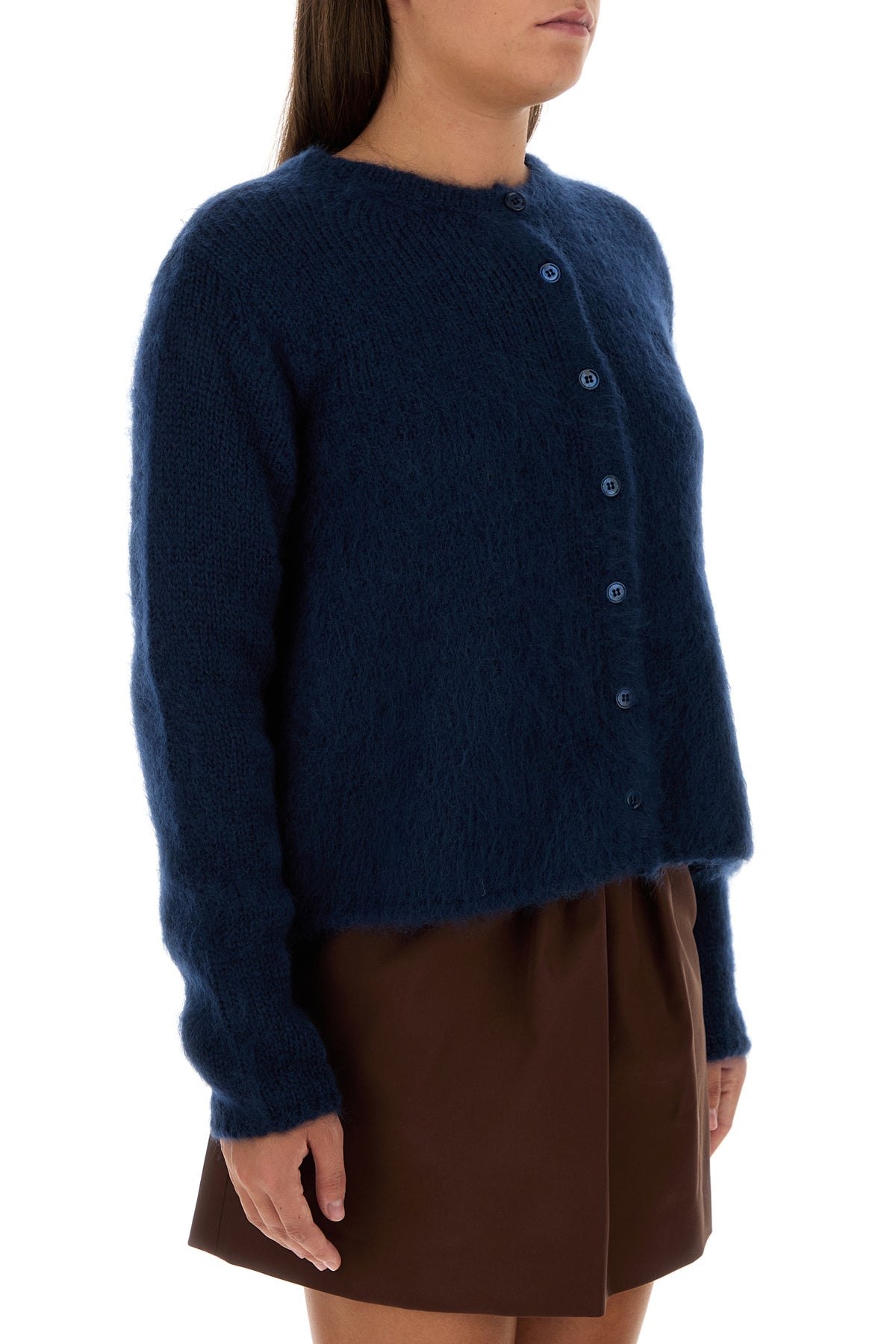 Cardigan realized in stretch mohair blend characterized by tonal Anagram embroidery on the chest.