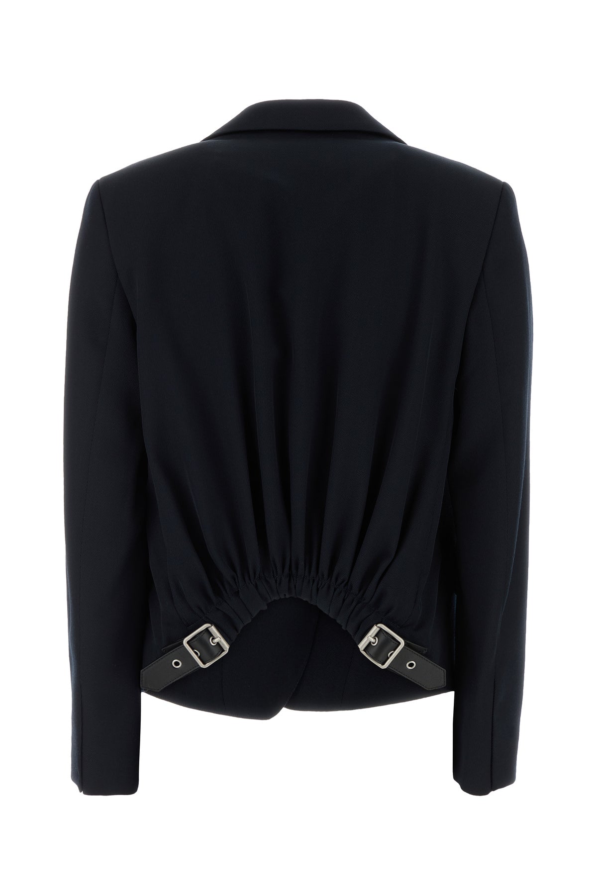 Blazer realized in pure wool enriched by adjustable leather belt at the back.