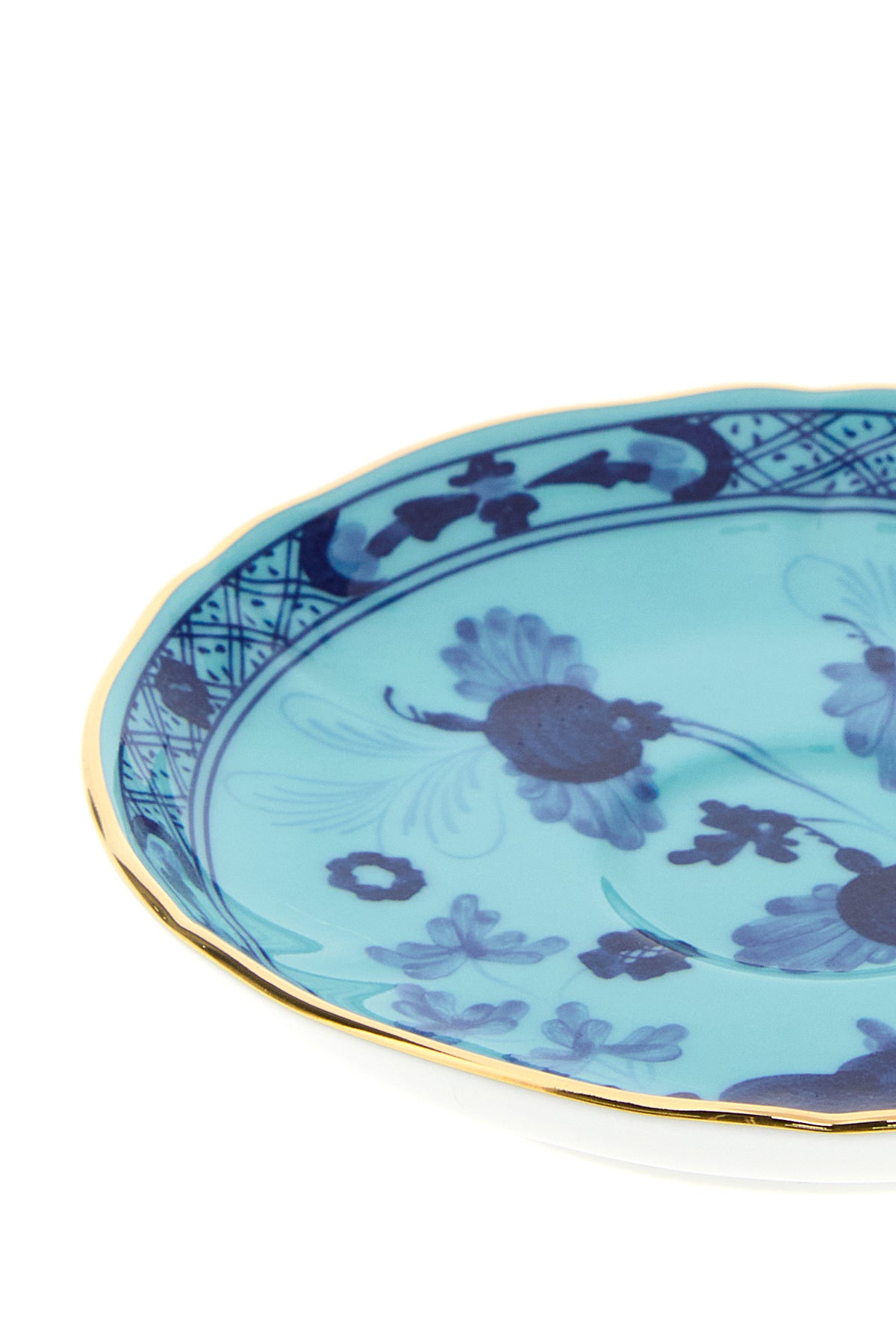 Coffee plate from the Oriente Italiano collection realized in porcelain characterized by peculiar embellishment on the entire surface.
