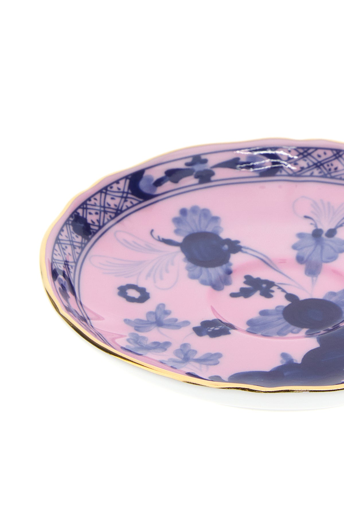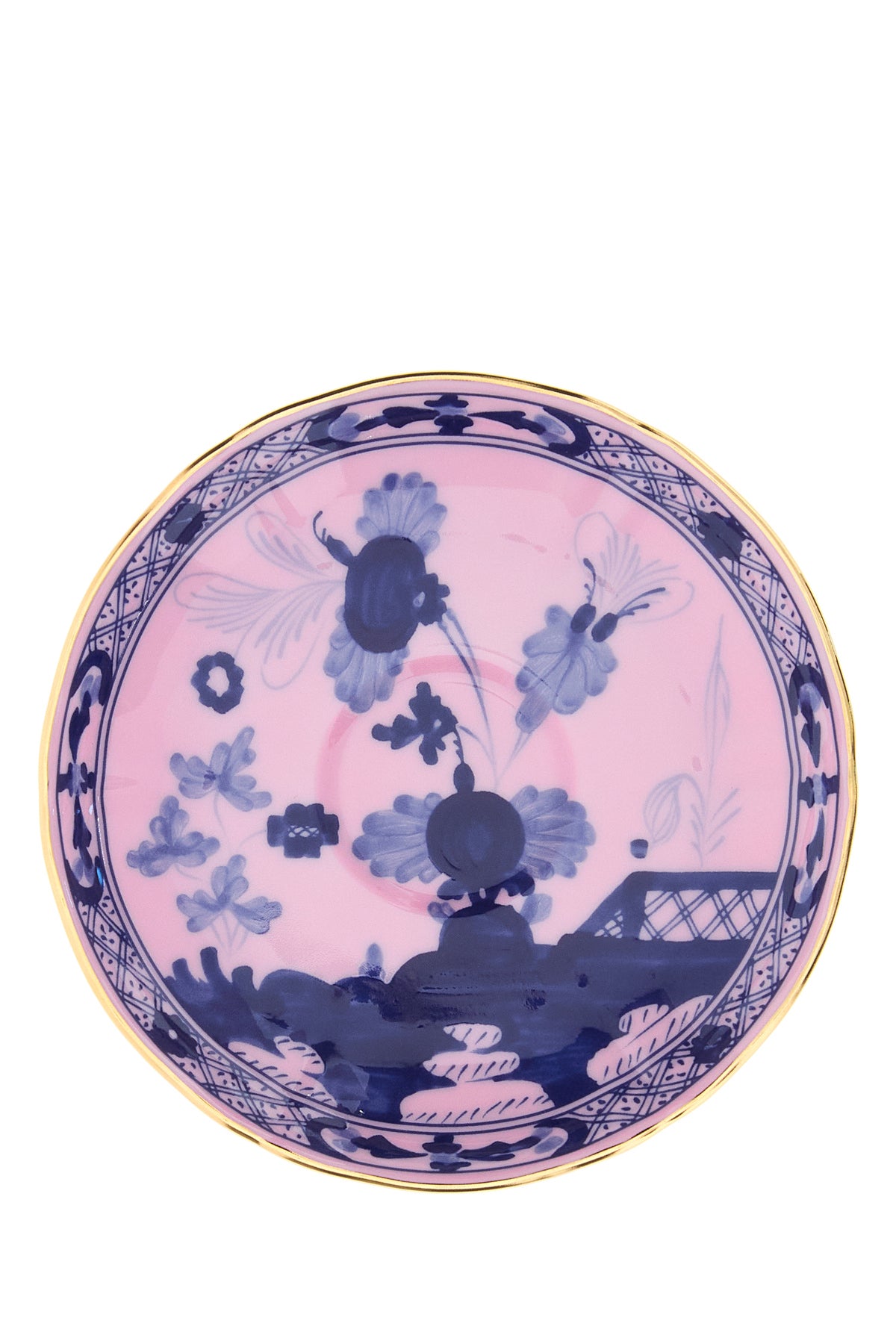 Coffee plate from the Oriente Italiano collection realized in porcelain characterized by peculiar embellishment on the entire surface.