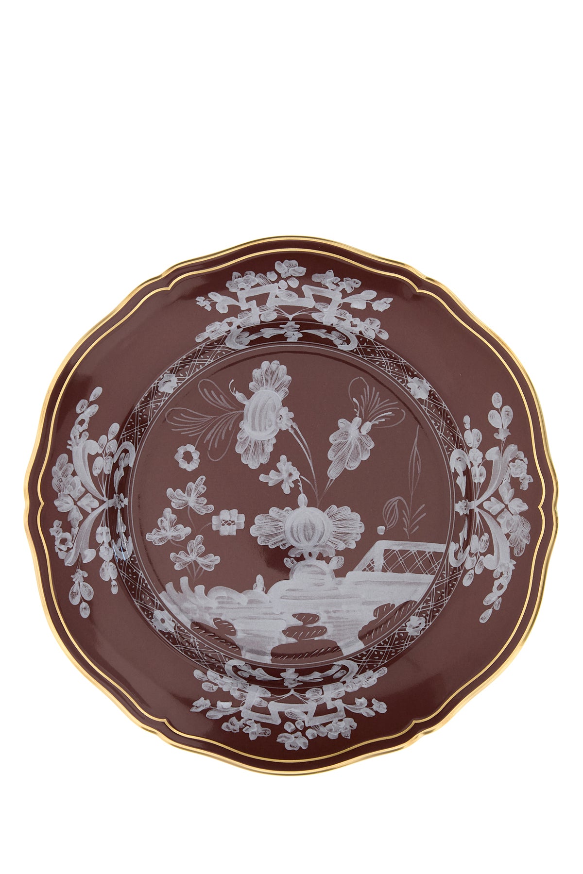 Dinner plate from the Oriente Italiano collection realized in porcelain characterized by peculiar embellishment on the entire surface.