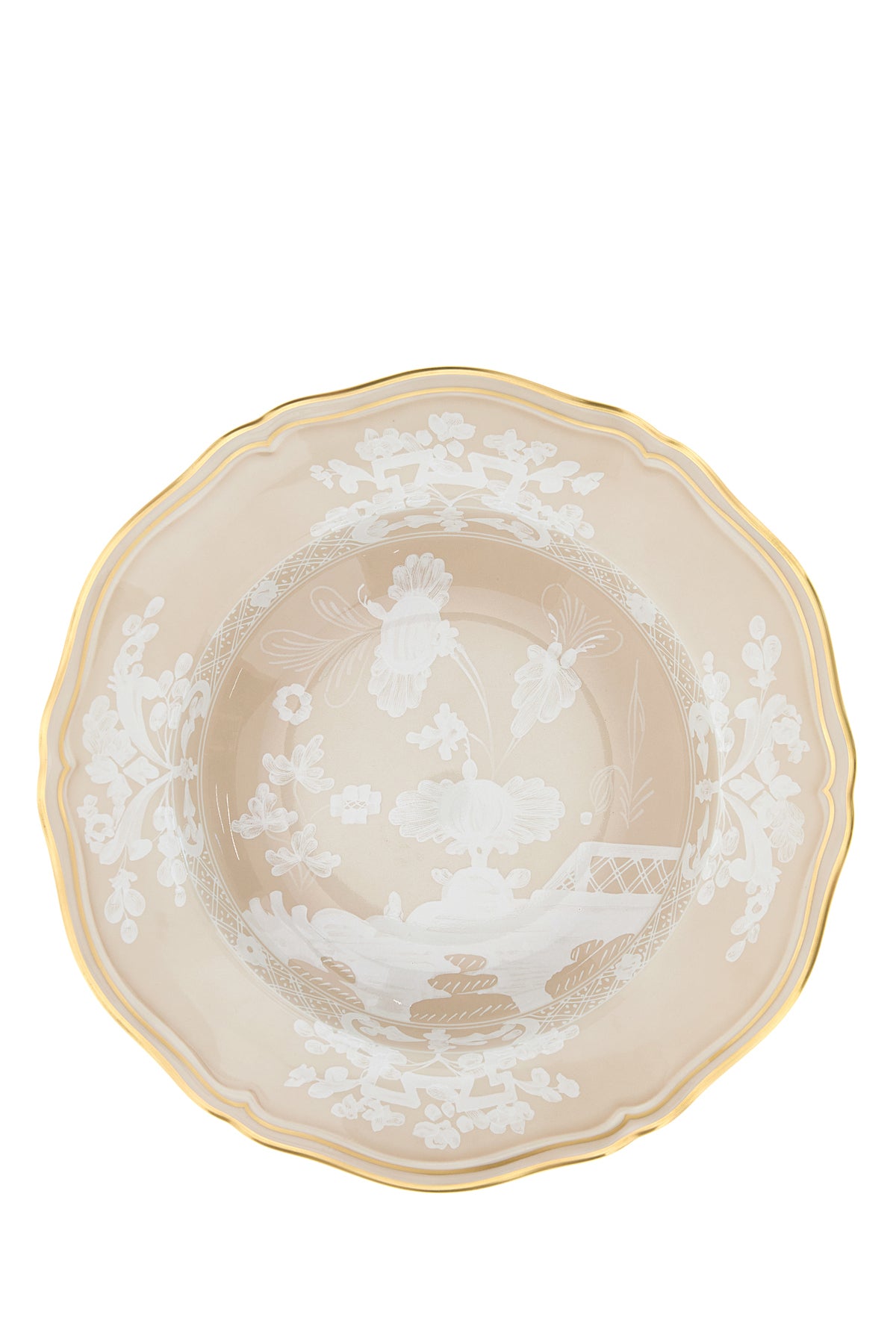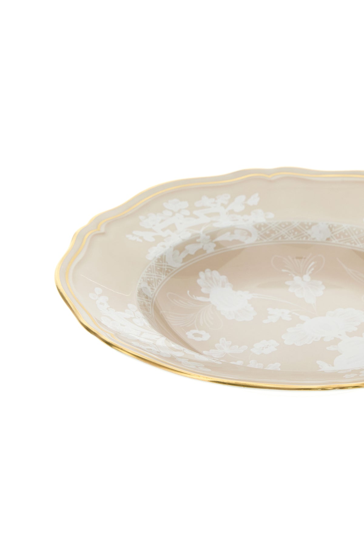 Soup plate from the Oriente Italiano collection realized in porcelain characterized by peculiar embellishment on the entire surface.
