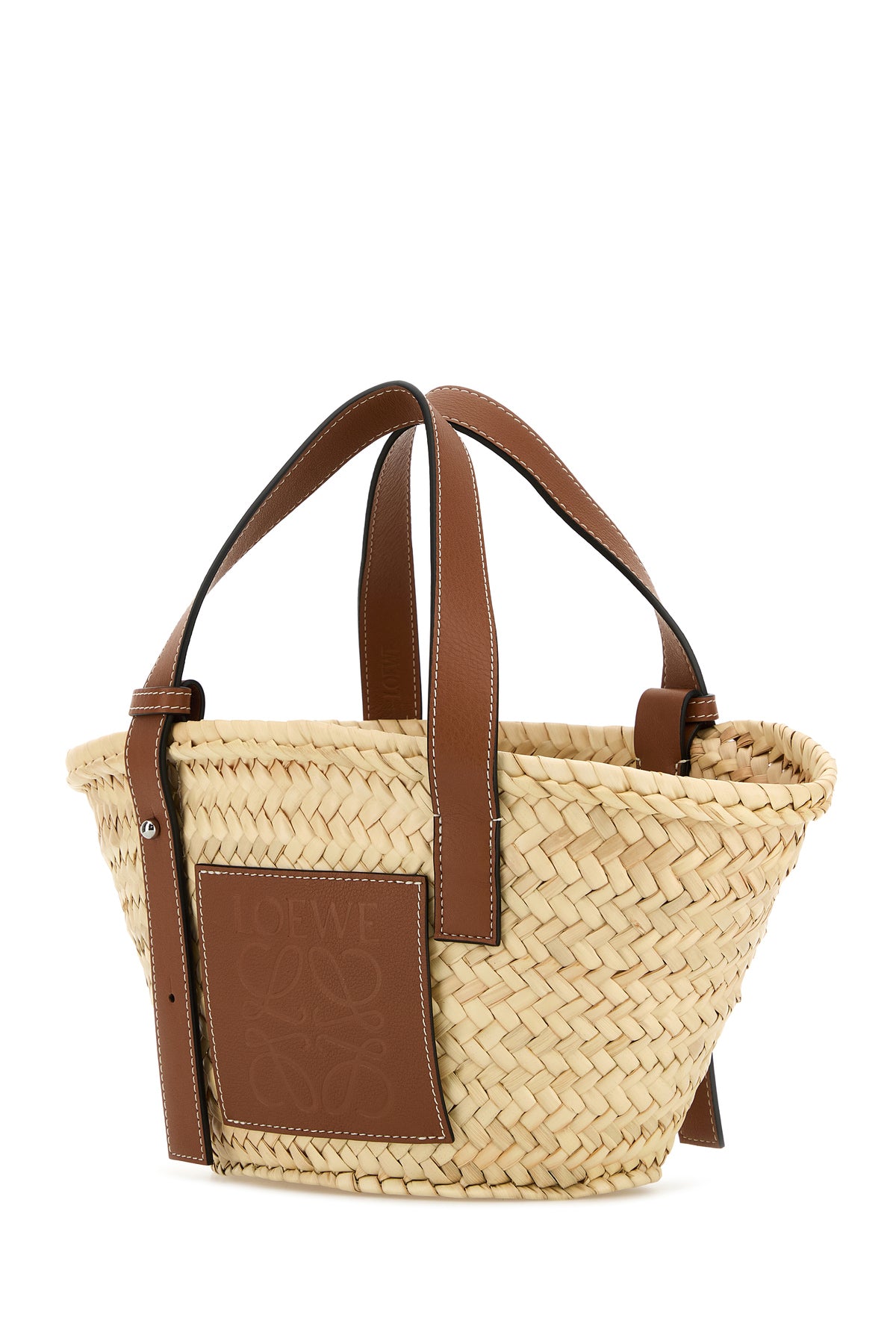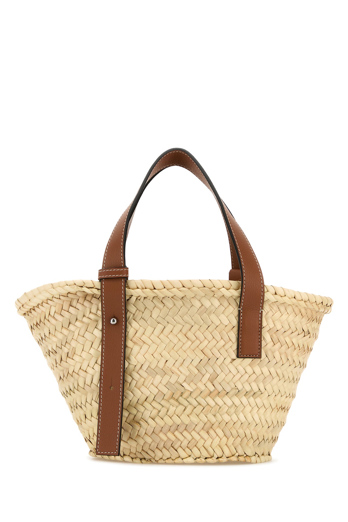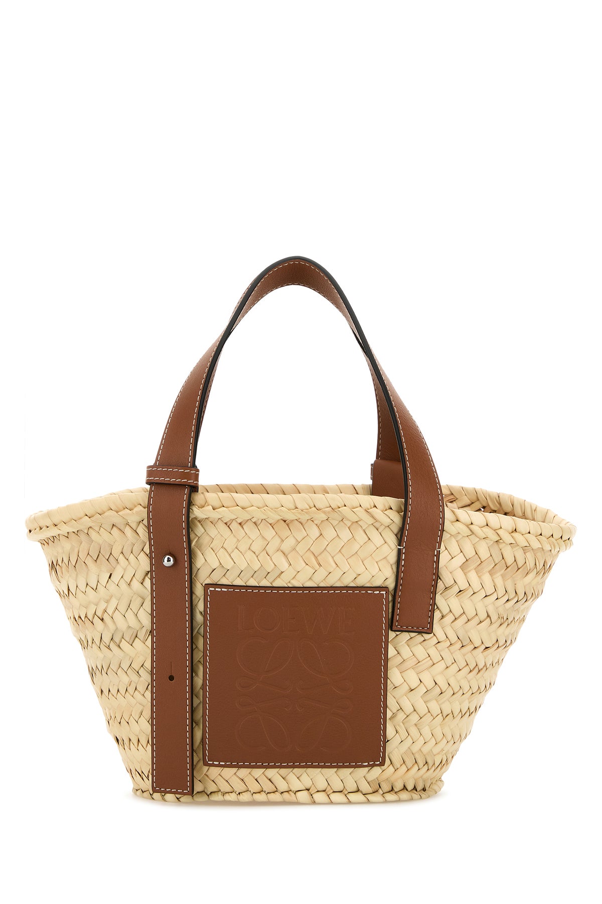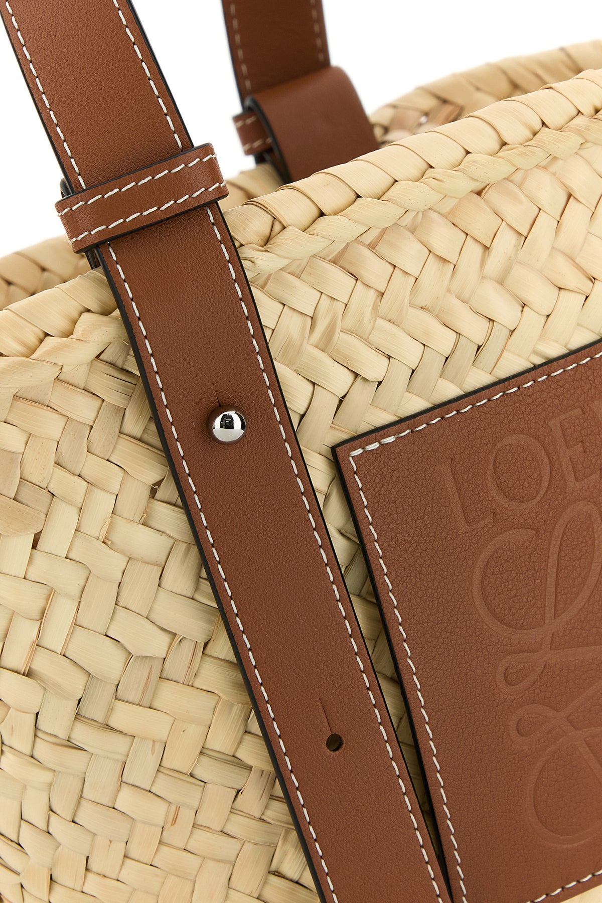 Handbag realized in woven palm leaf enriched by leather logoed patch at the front.