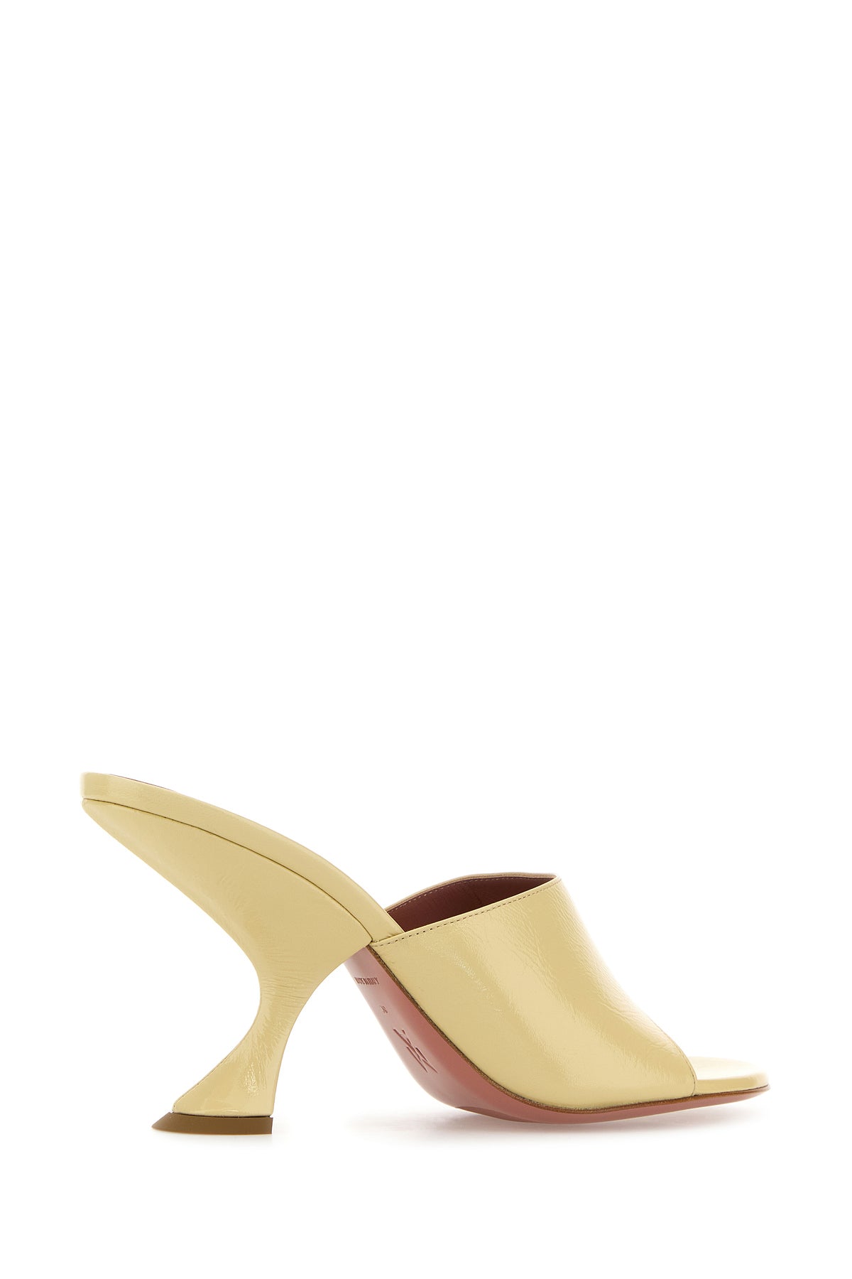 Mules realized in pebble leather characterized by peculiar heel.