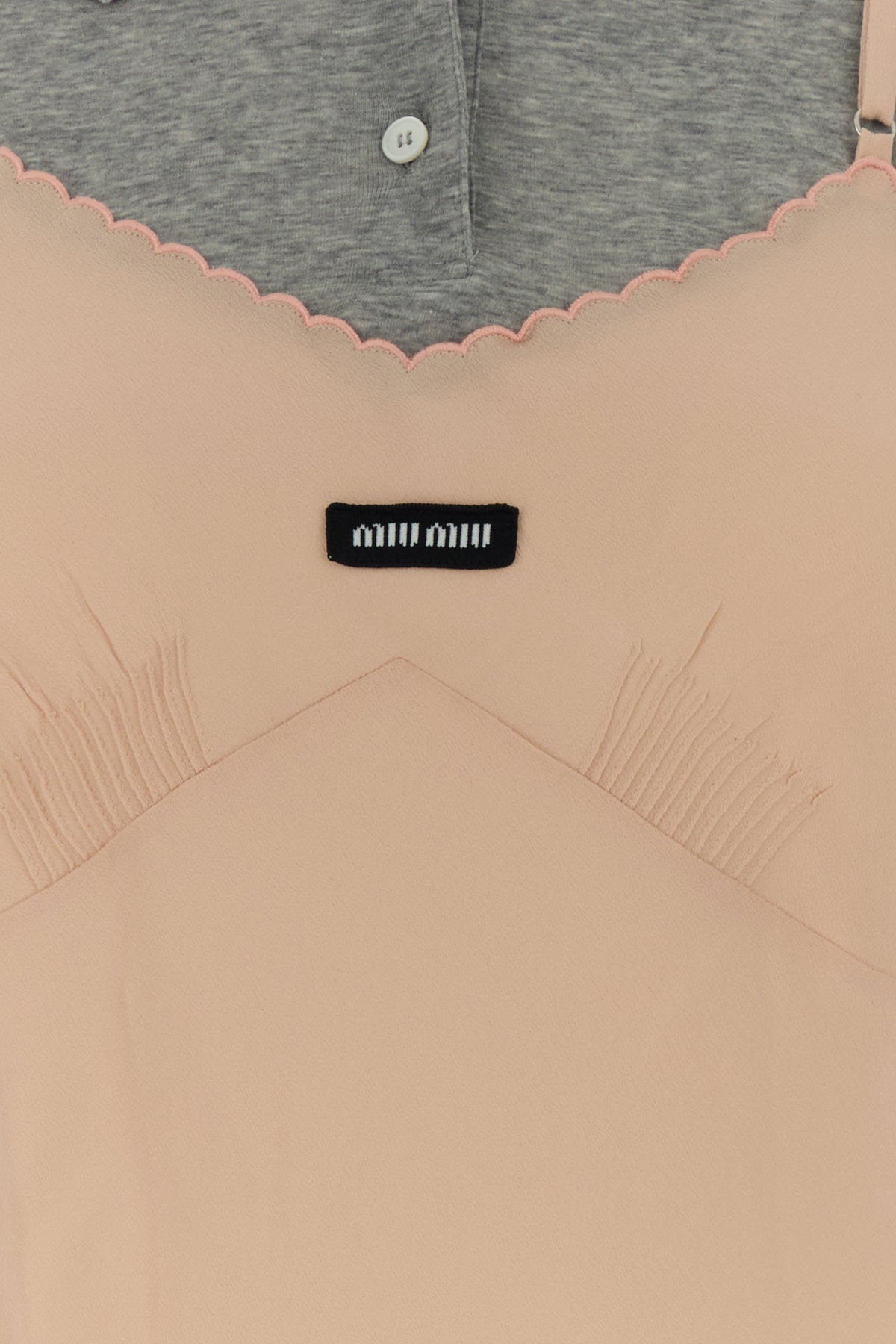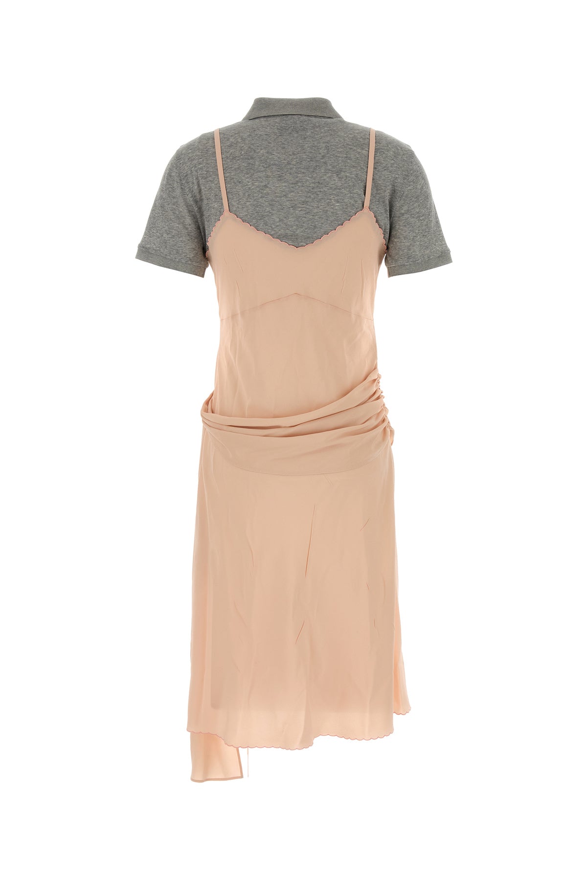 Dress realized in pure silk with contrasting cotton insert at the top enriched by logoed label on the chest.