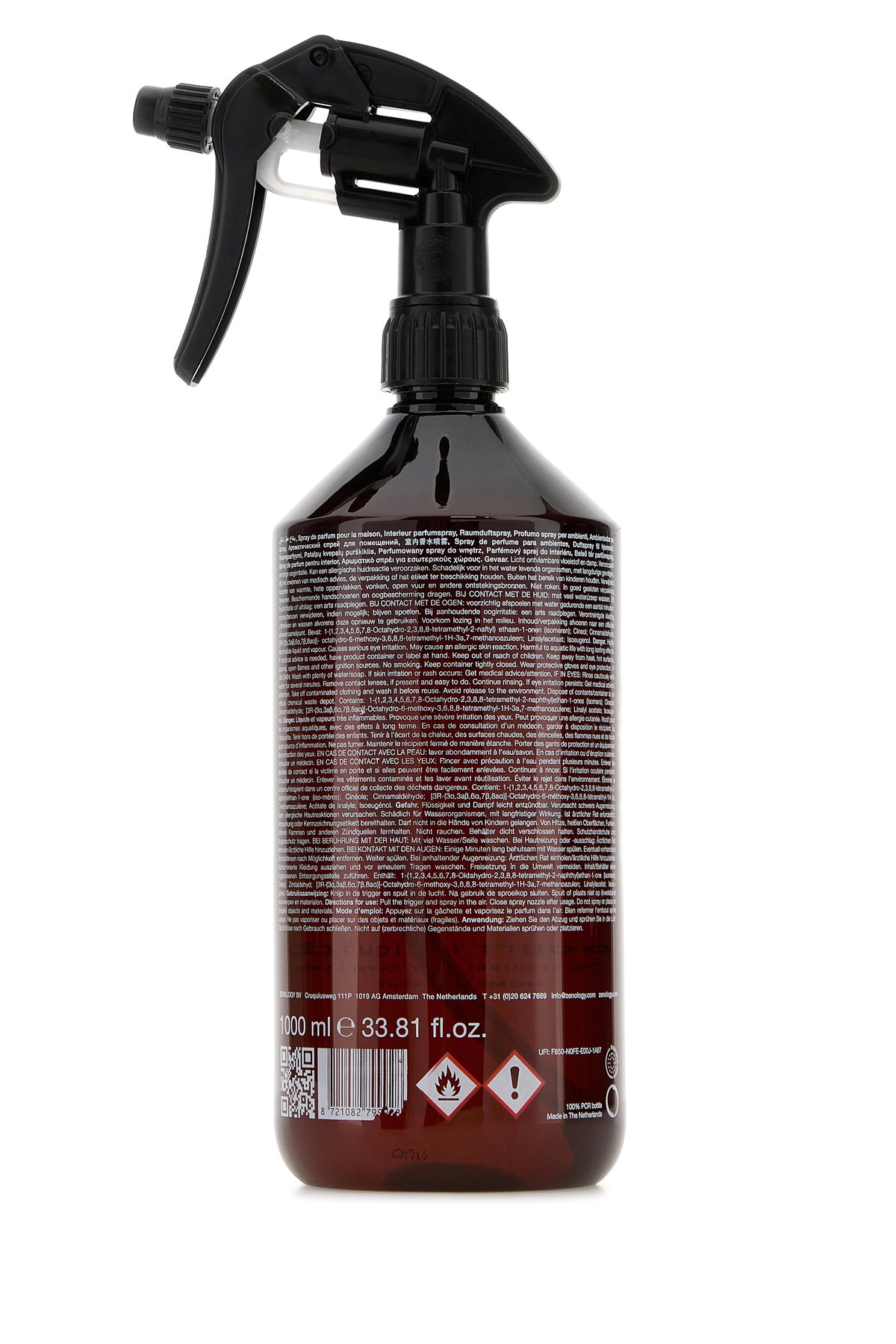 Room spray characterized by recycled PET bottle with logoed print at the front.