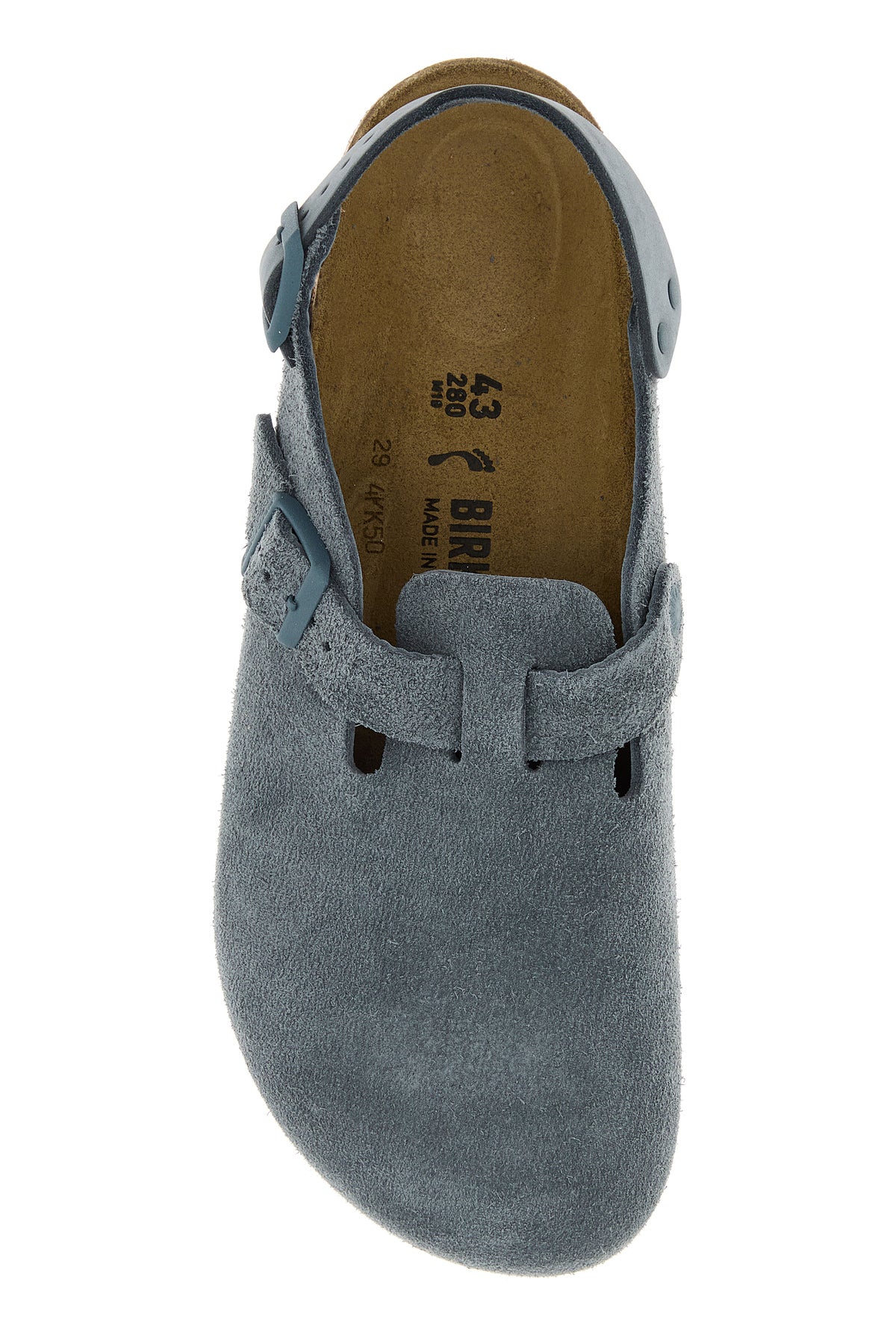 Slippers realized in suede characterized by embossed logo on the side enriched by adjustable strap on the instep.