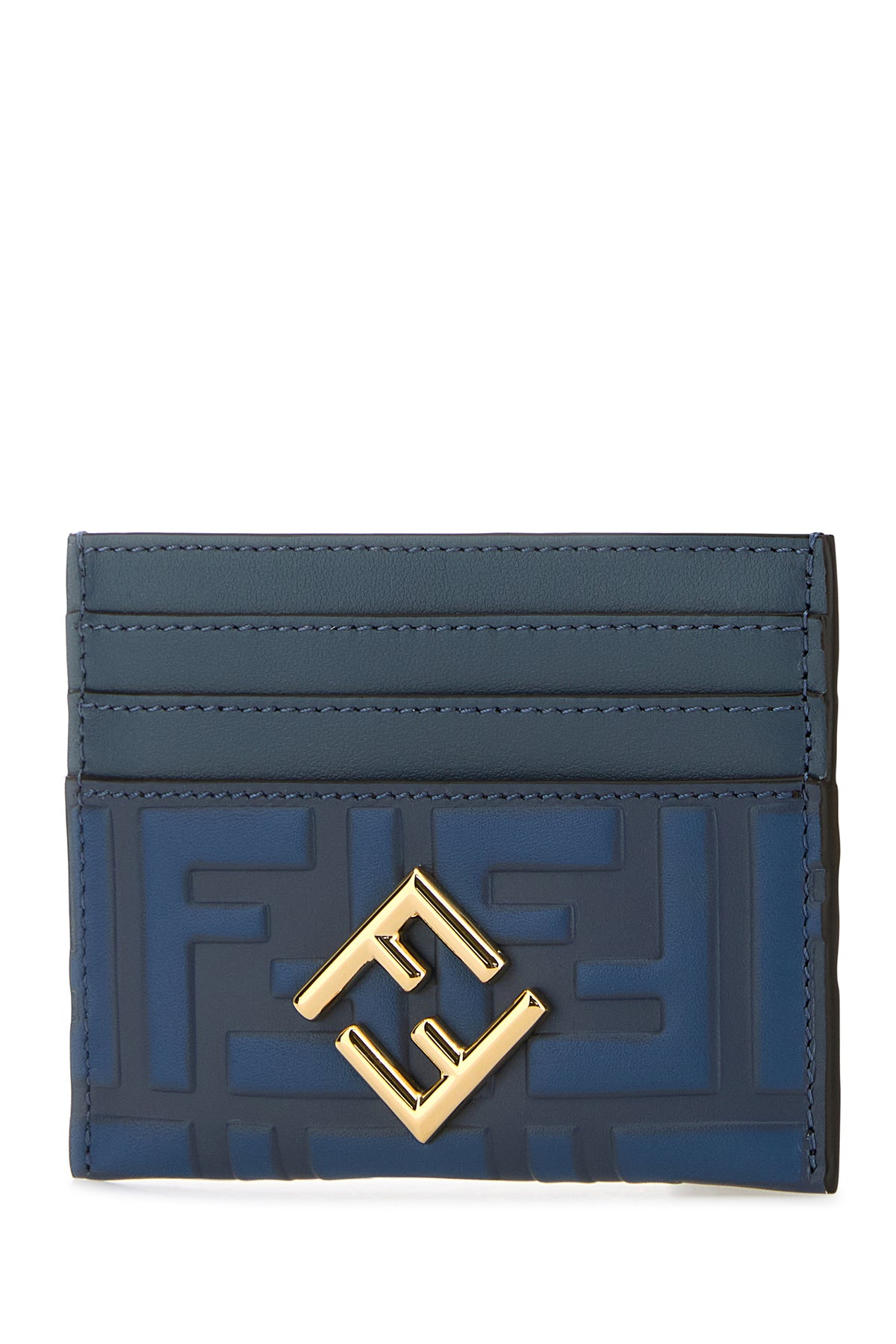 Card holder realized in laminated leather characterized by FF in relief enriched by FF metal detail at the front.
