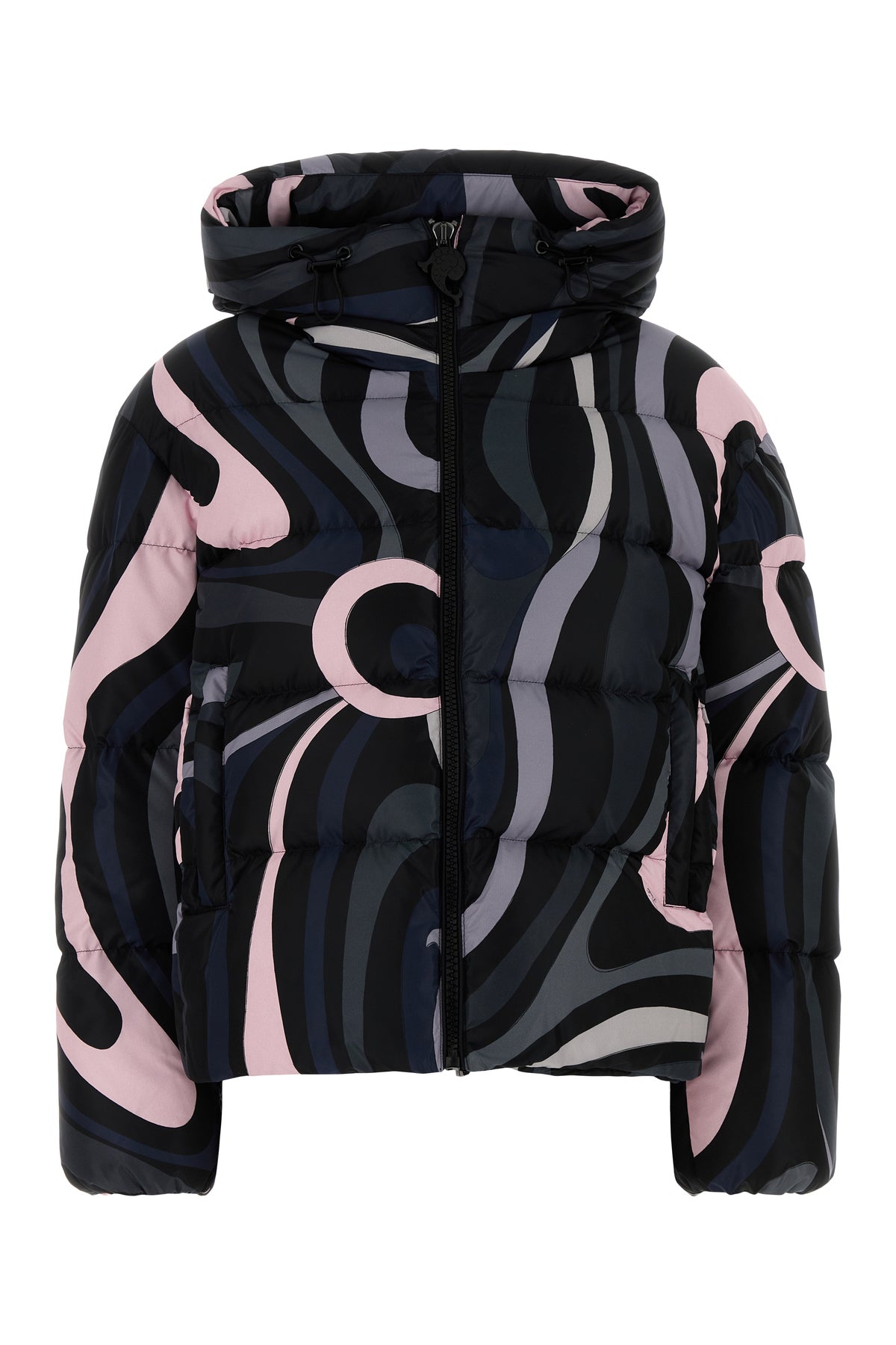 Down jacket realized in quilted nylon characterized by Marble print on the entire surface.