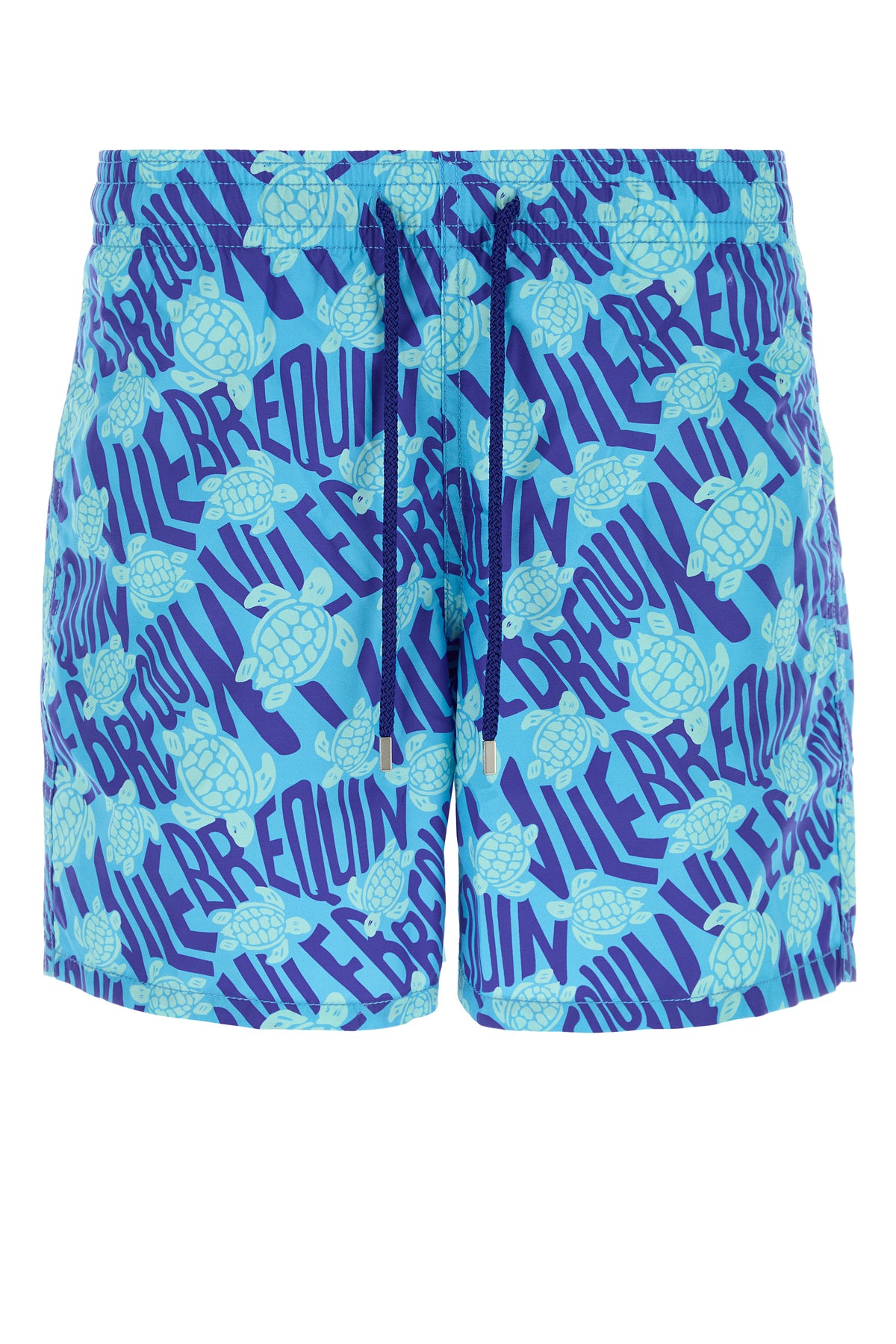 Swimming shorts realized in nylon characterized by peculiar print on the entire surface enriched by logoed label at the back.