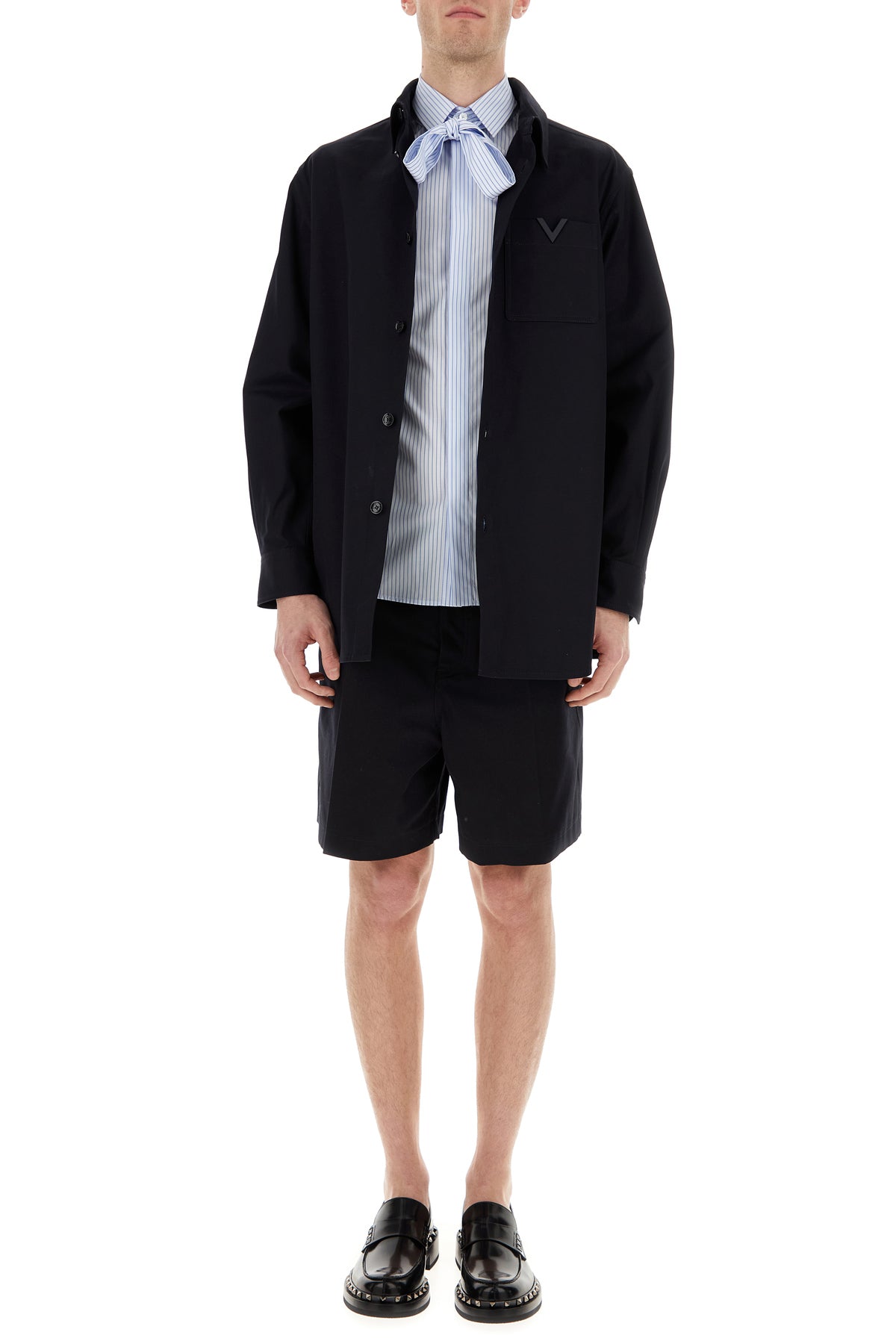 Shirt realized in pure cotton poplin characterized by stripes print on the entire surface.