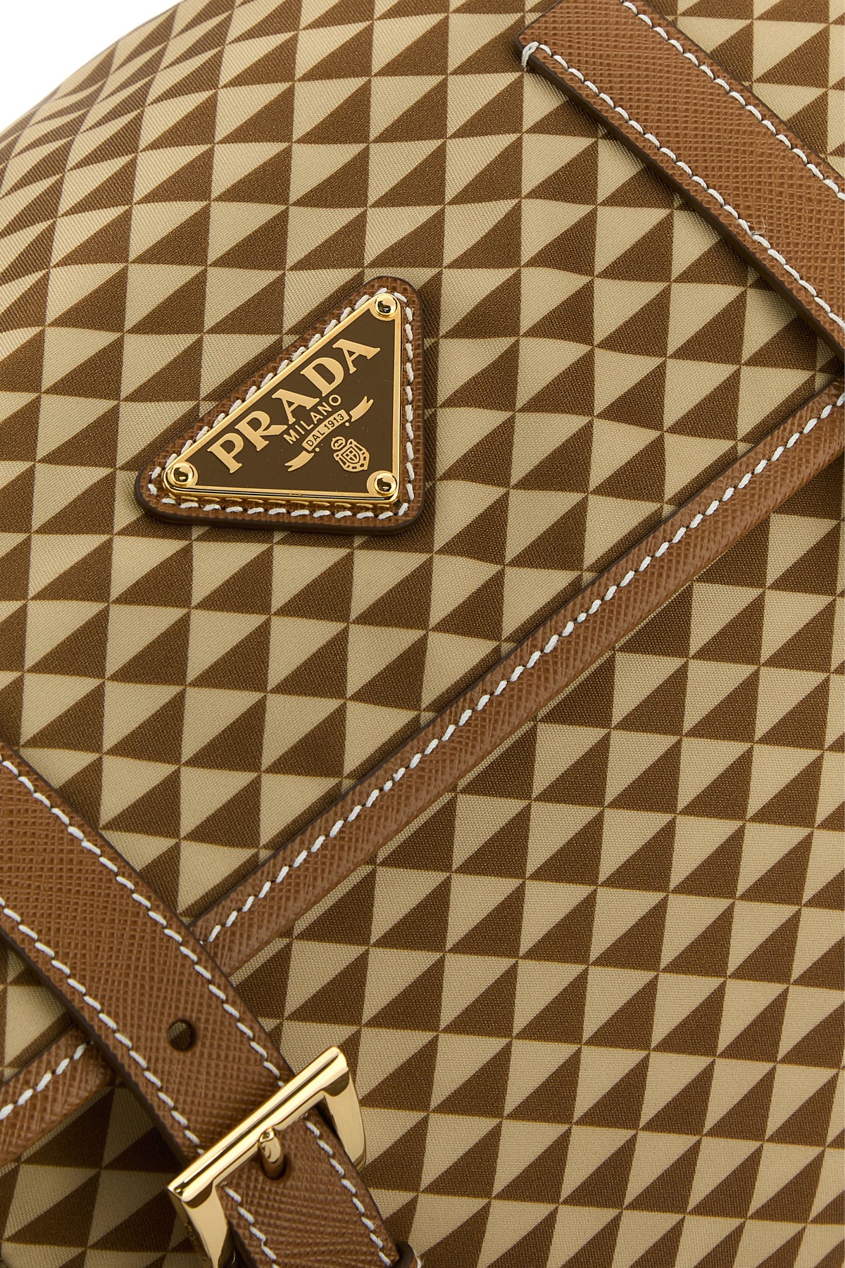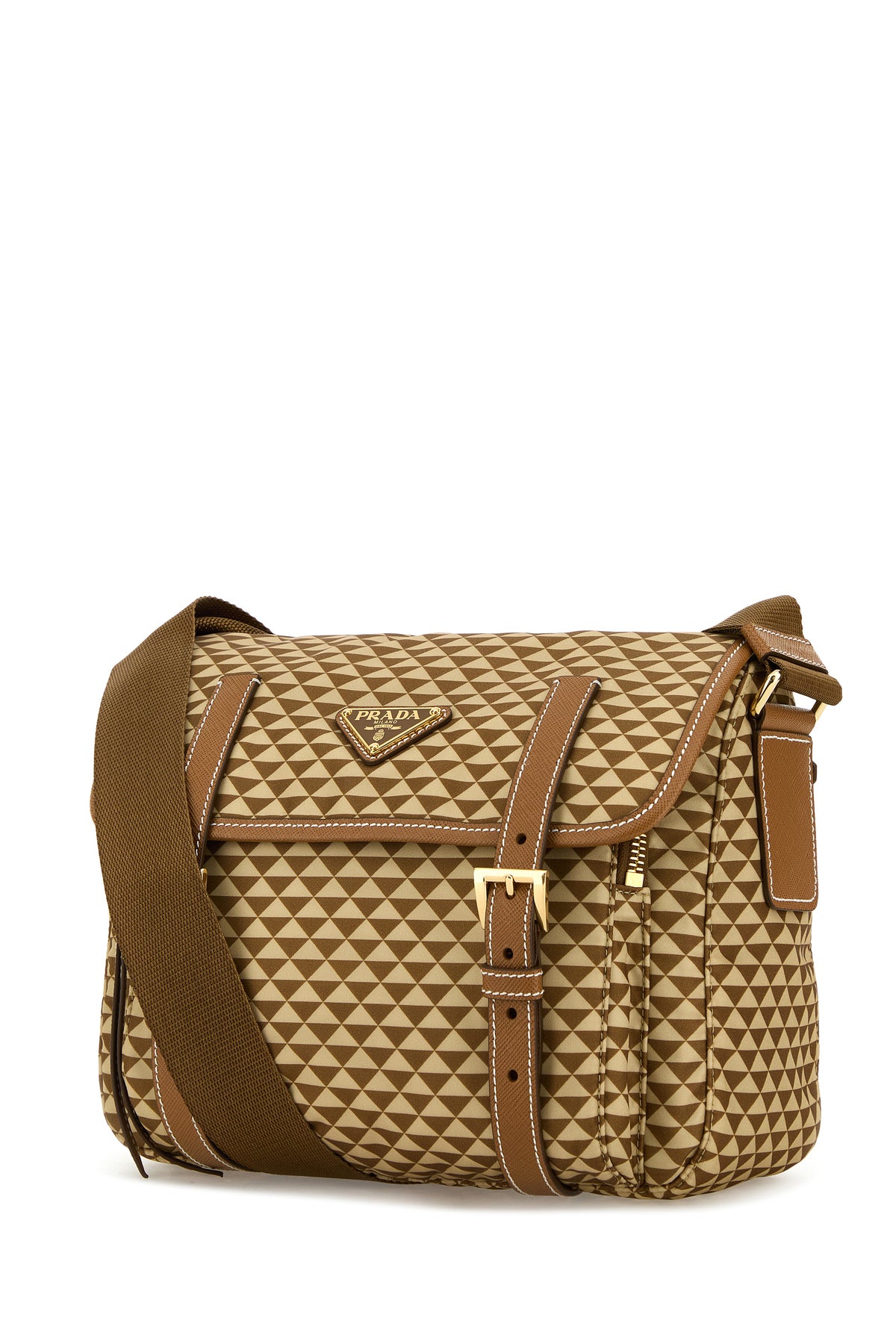 Crossbody bag realized in Re-Nylon characterized by peculiar print on the entire surface enriched by iconic metal logoed triangle at the front.