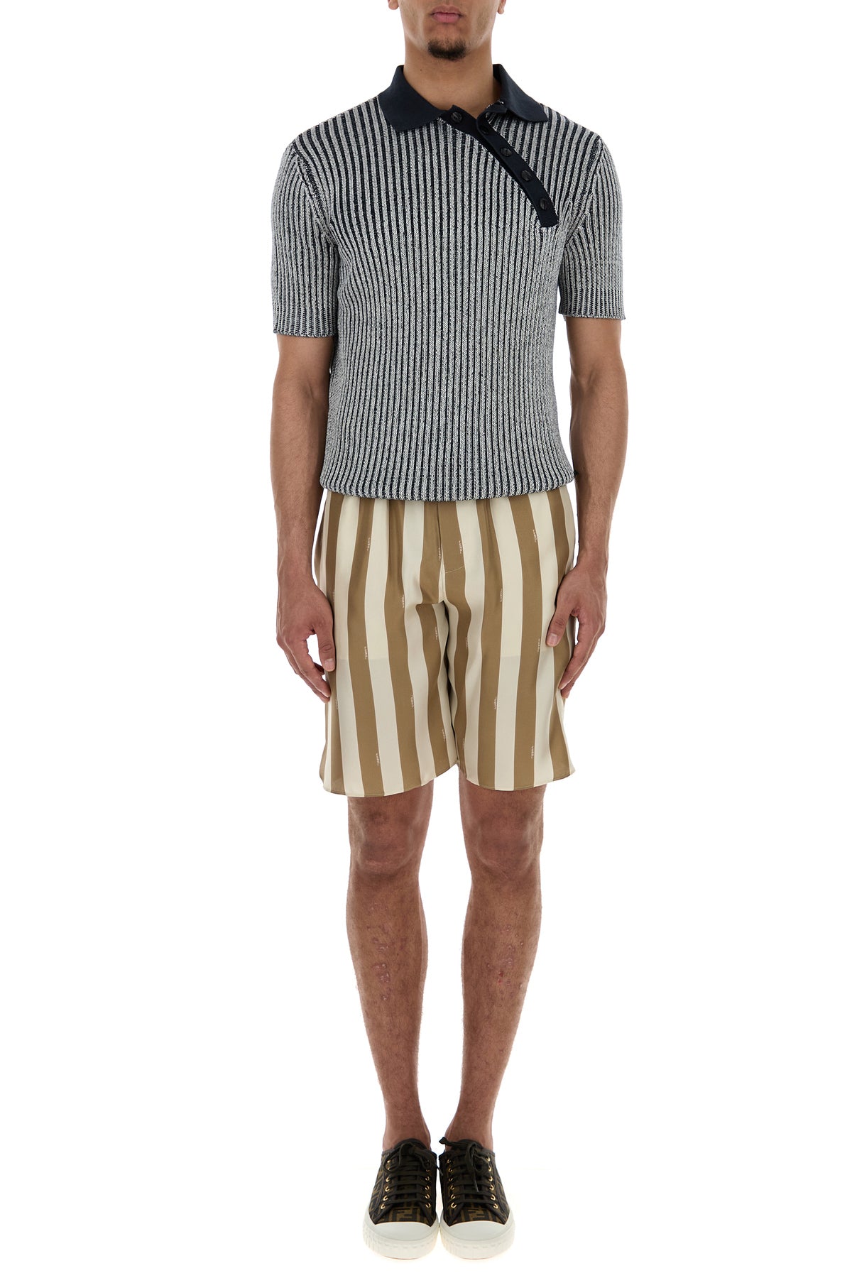 Bermuda shorts realized in pure silk characterized by Pequin striped print on the entire surface.