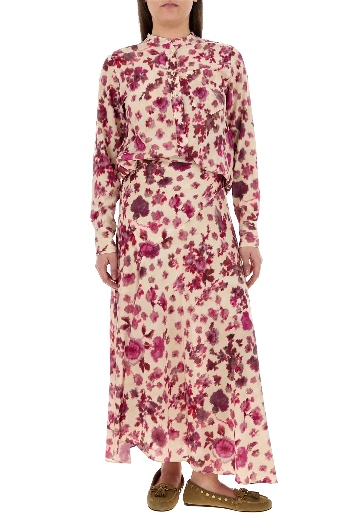 Midi-lenght skirt realized in stretch silk characterized by peculiar print on the entire surface.