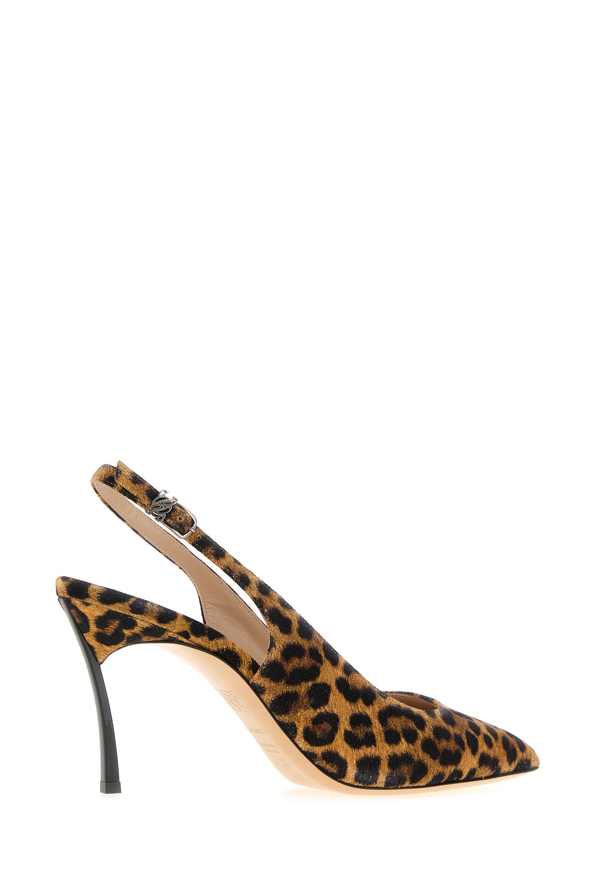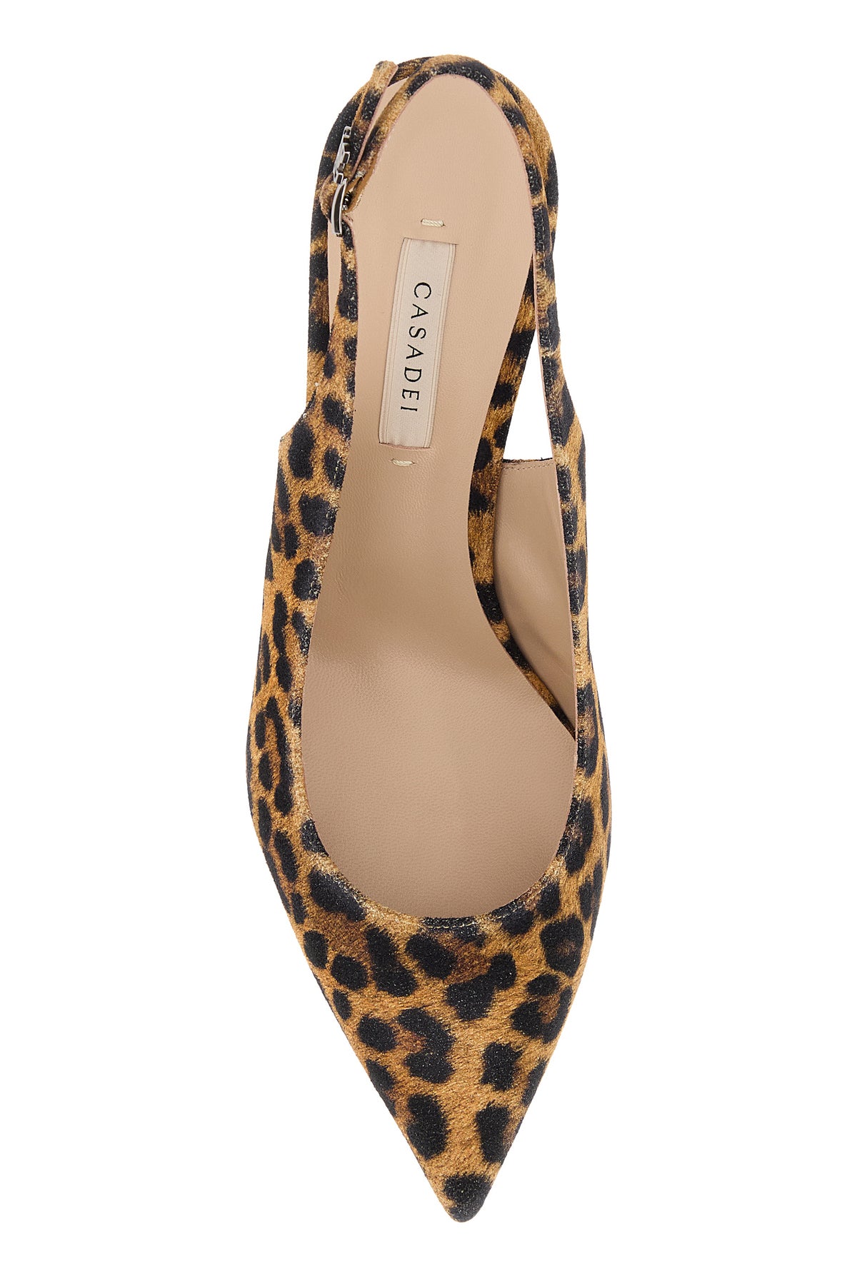 Slingback realized in suede characterized by animalier motif print on the entire surface.