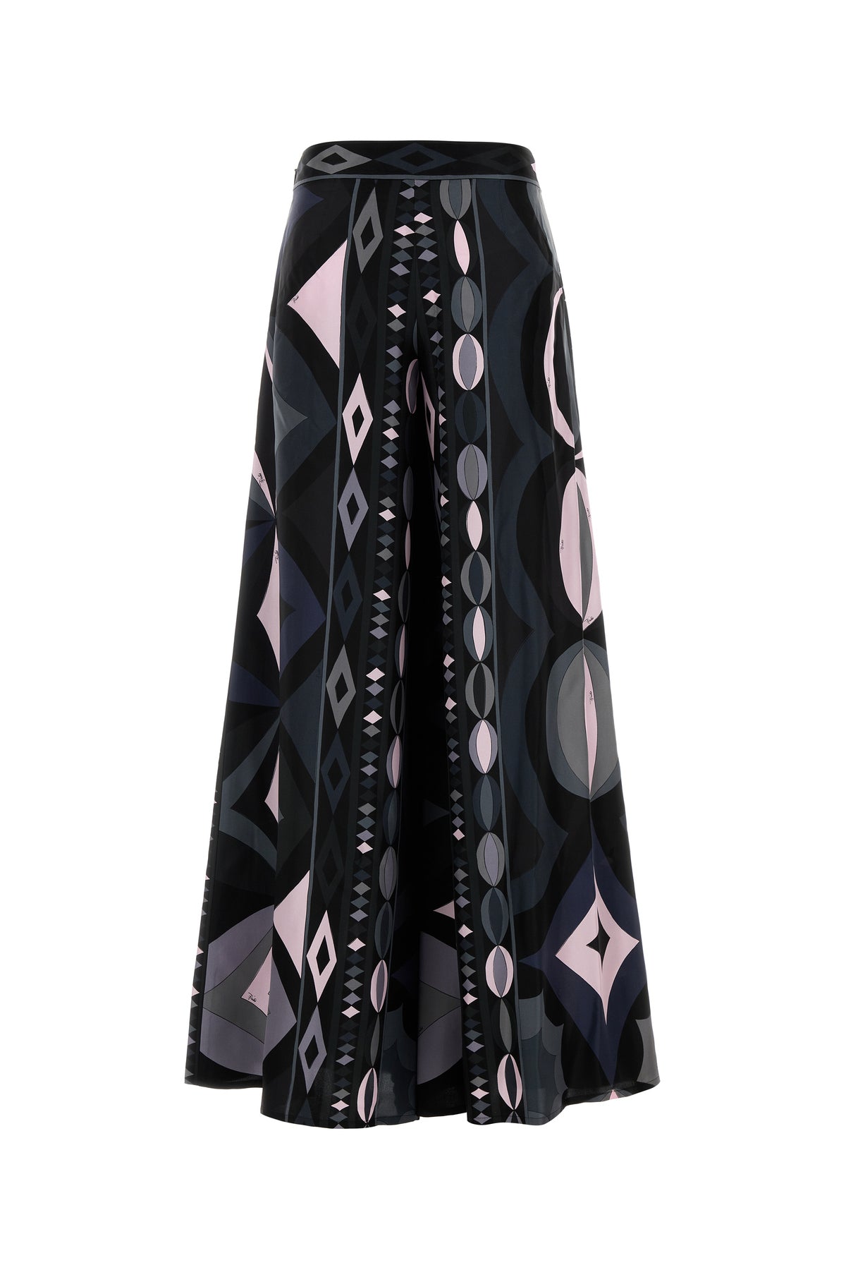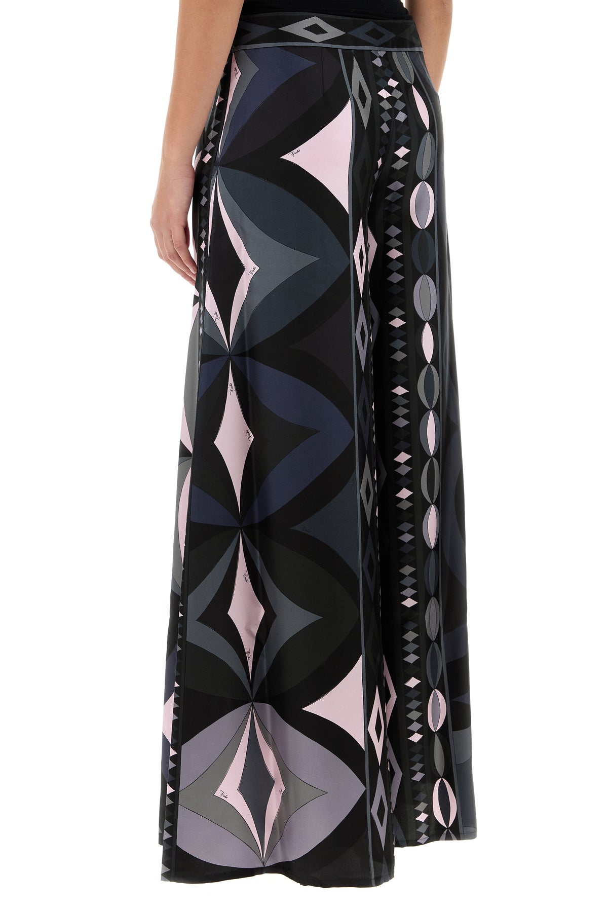 Wide-leg pant realized in pure silk twill characterized by peculiar print on the entire surface.
