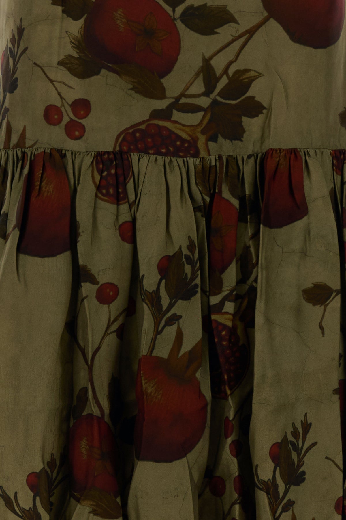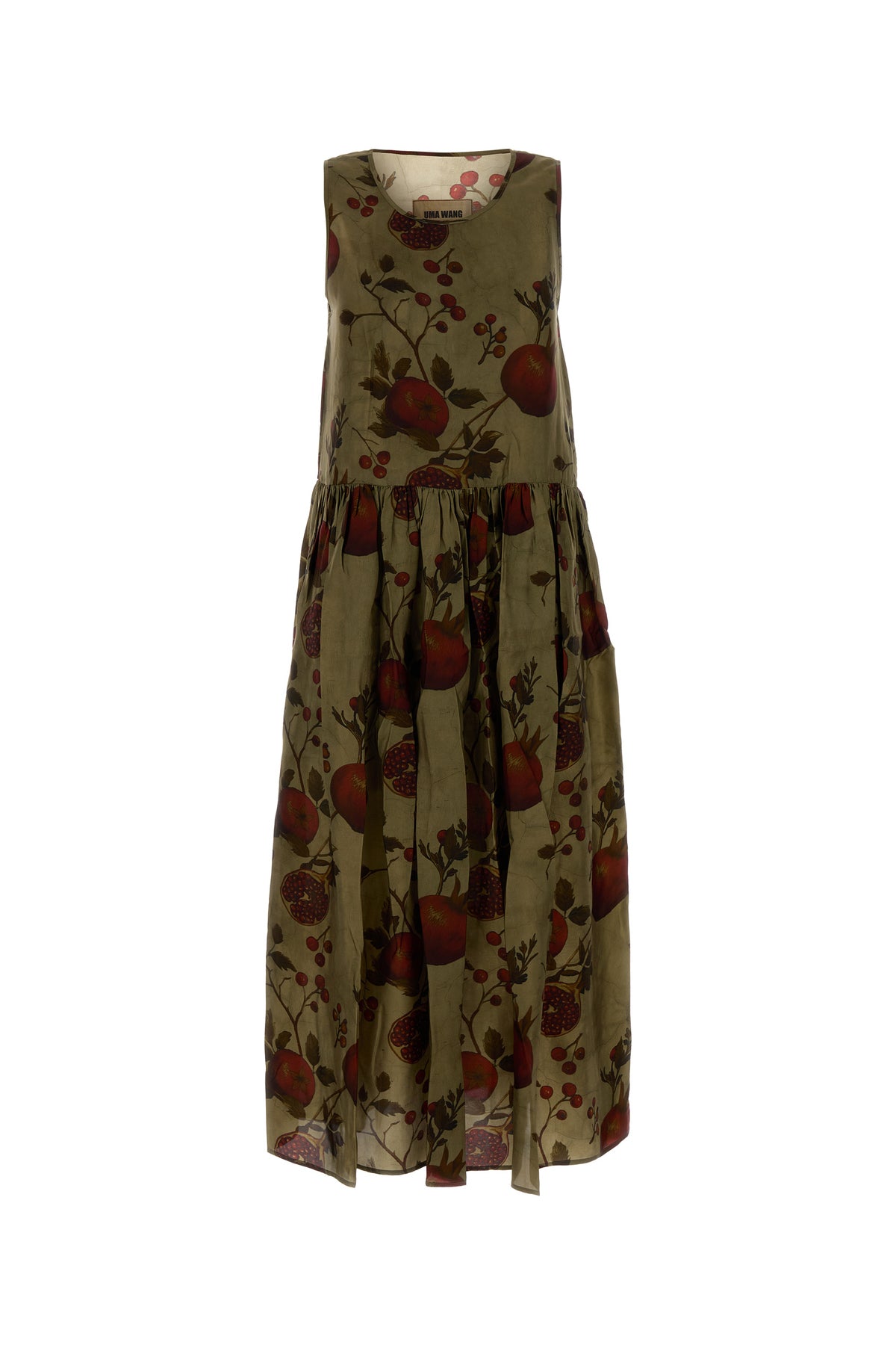 Midi-length dress realized in viscose and cupro characterized by peculiar print on the entire surface.