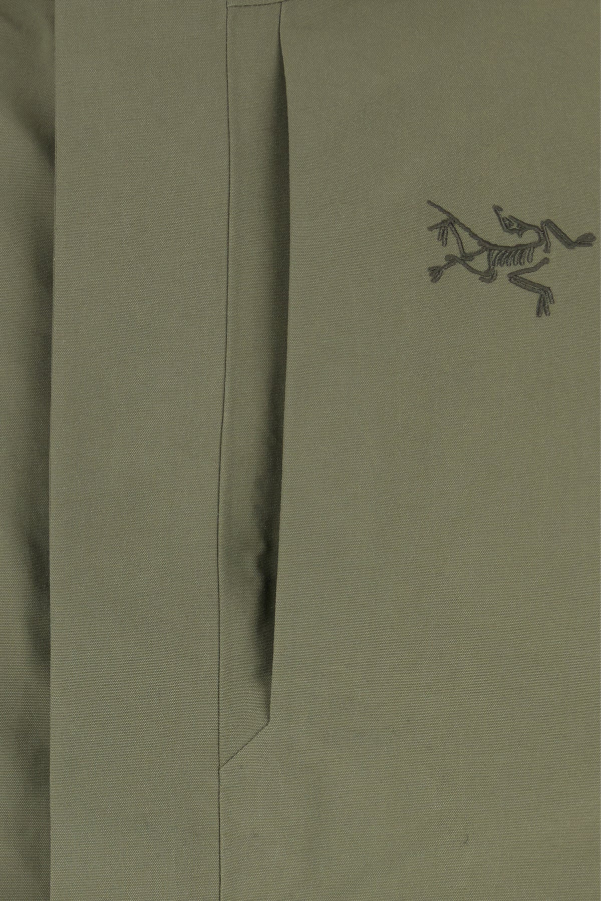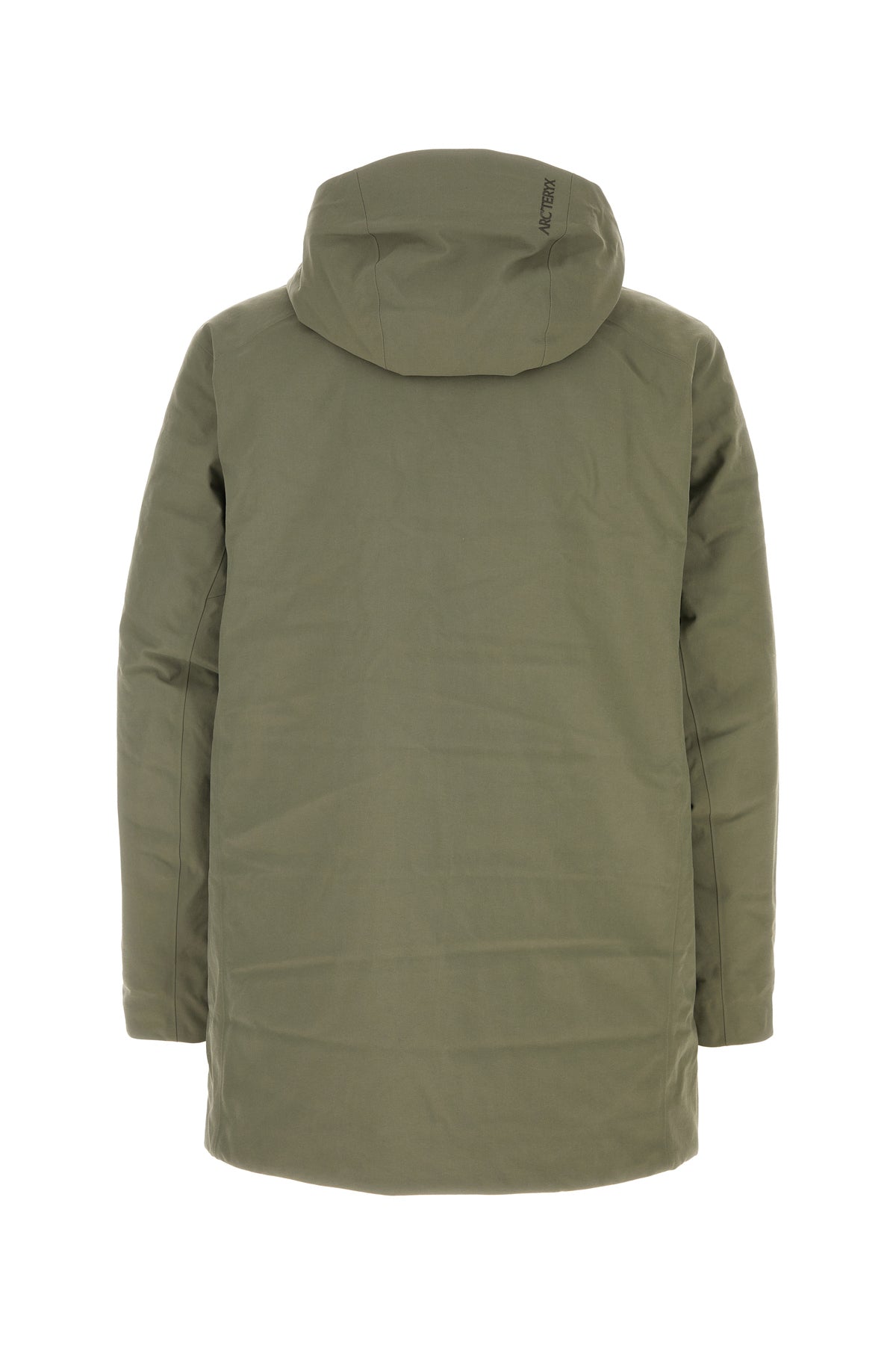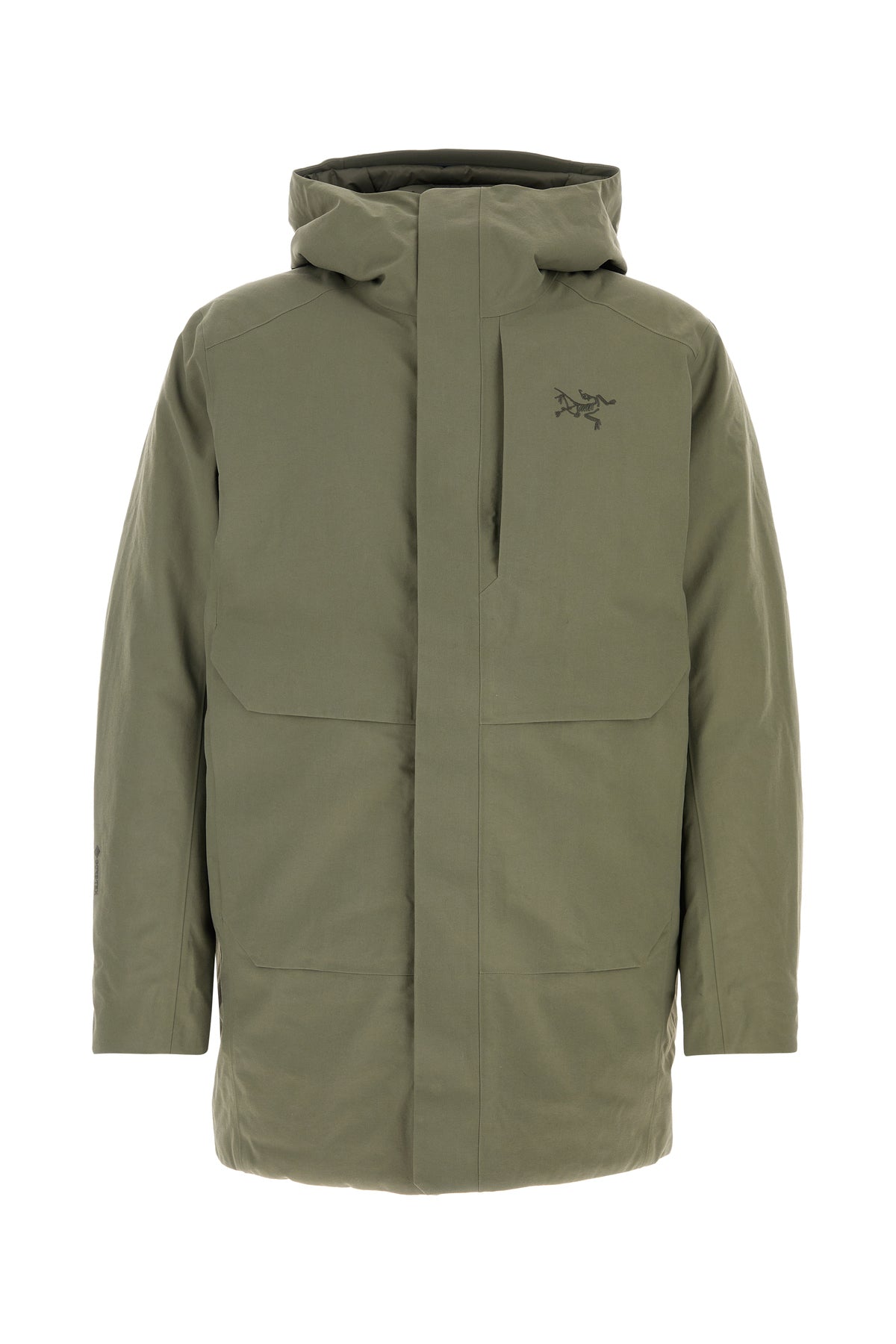 Down jacket realized in nylon characterized by contrasting embroidered logo on the chest.
