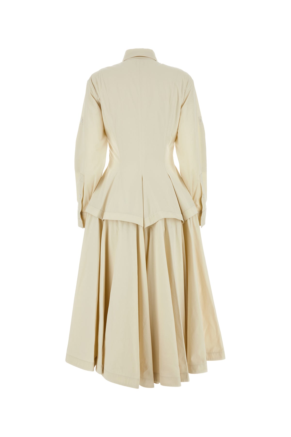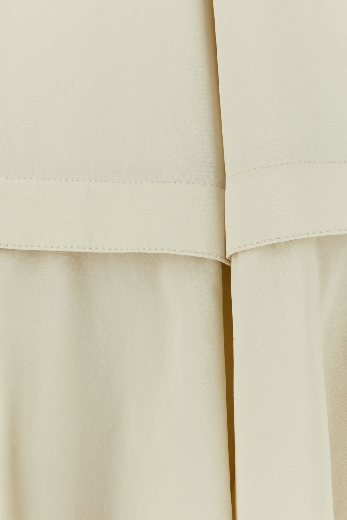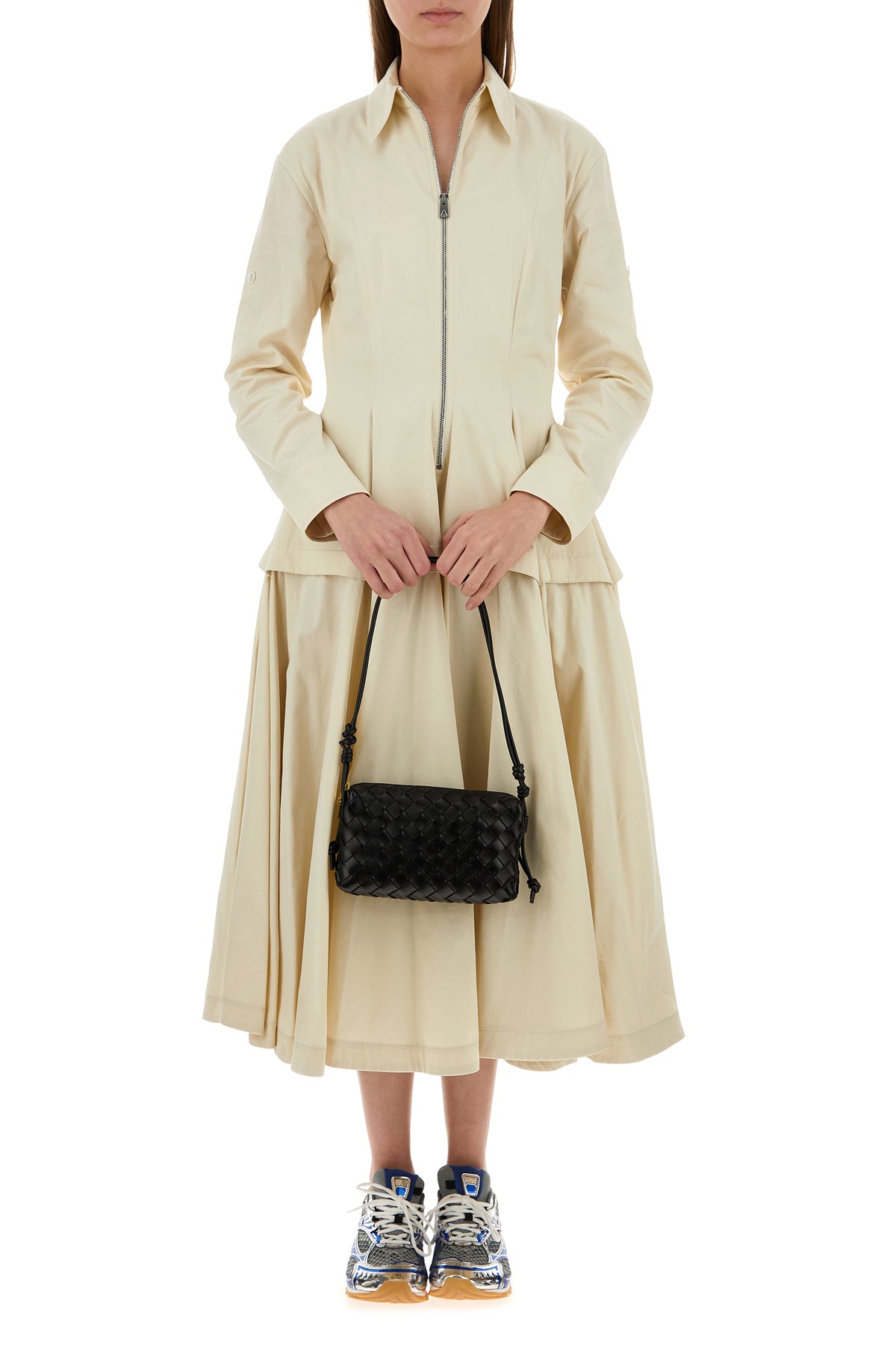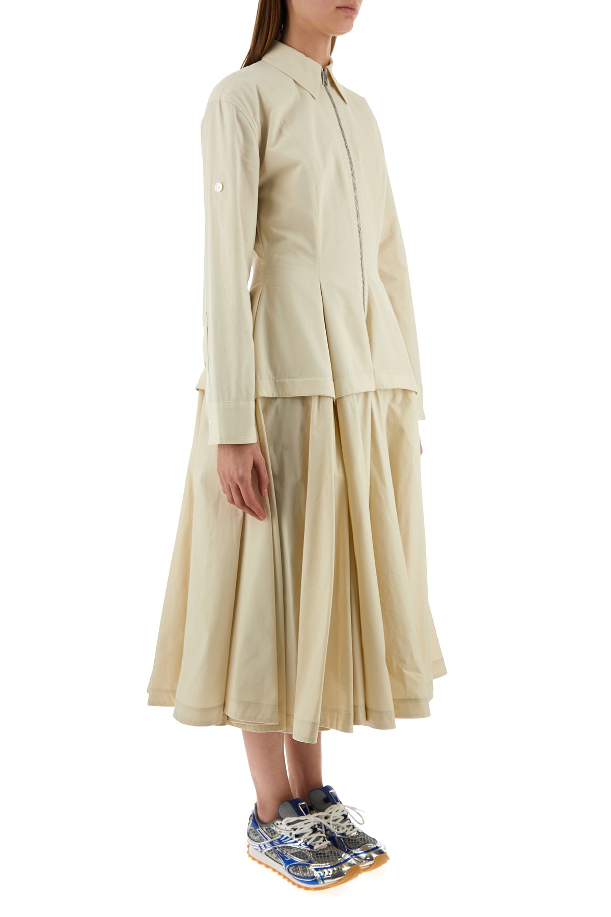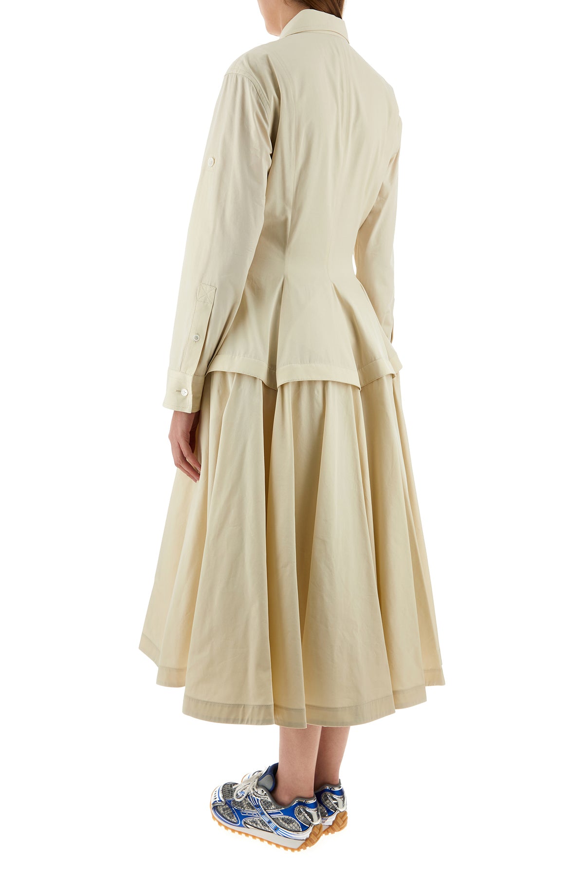 Shirt dress realized in cotton blend characterized by flared hemline.
