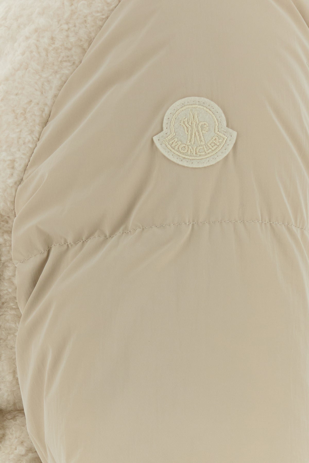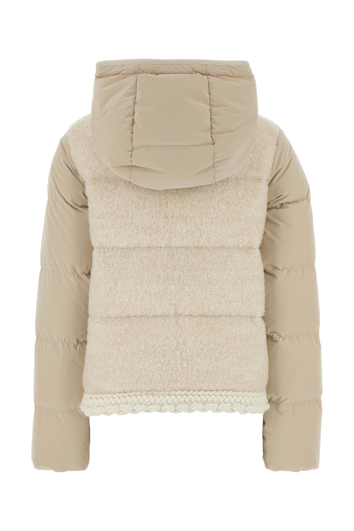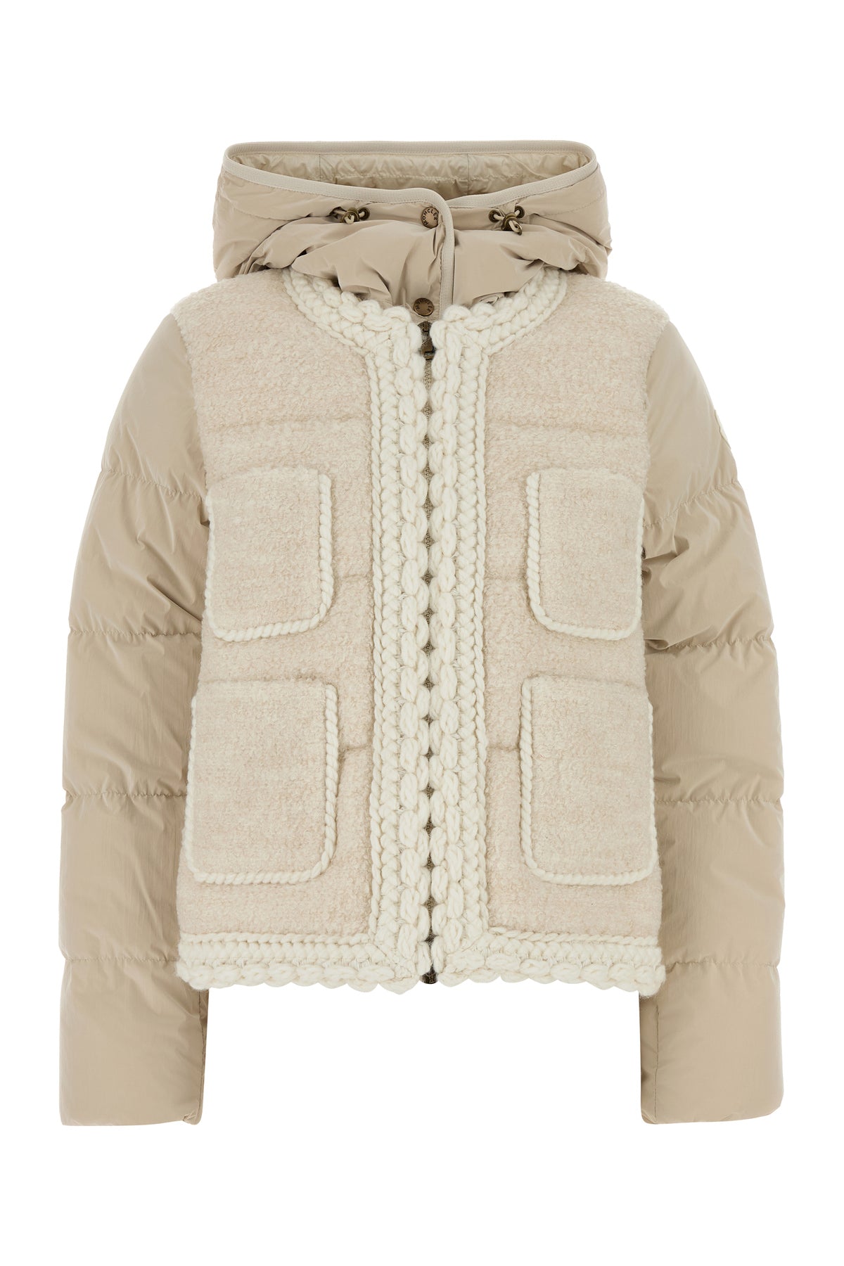 Down jacket realized in quilted nylon and knit enriched by contrasting logoed patch on the sleeve.