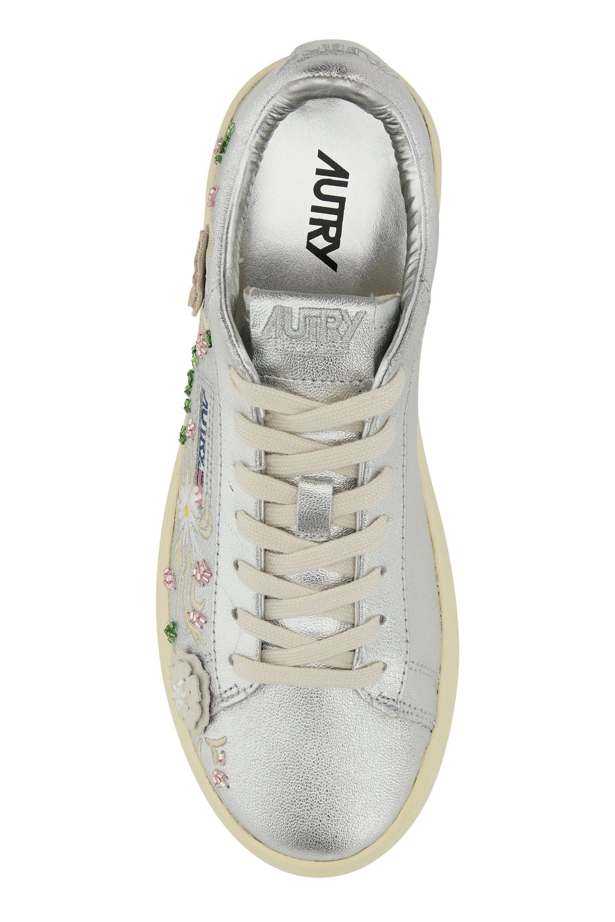 Sneakers realized in laminated leather characterized by embroidered logo on the heel and floral embroidery on the side enriched by logoed label on the side.