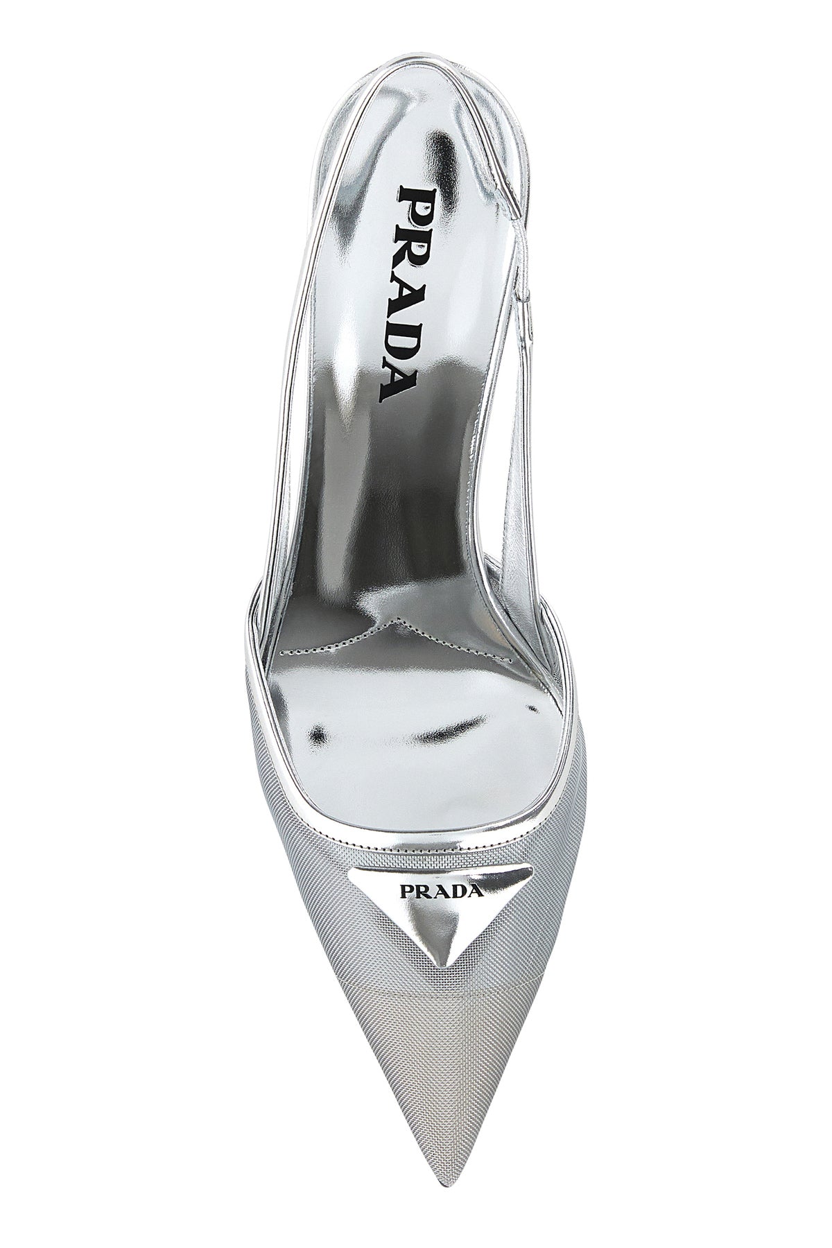 Slingback realized in mesh enriched by iconic logoed triangle on the instep.