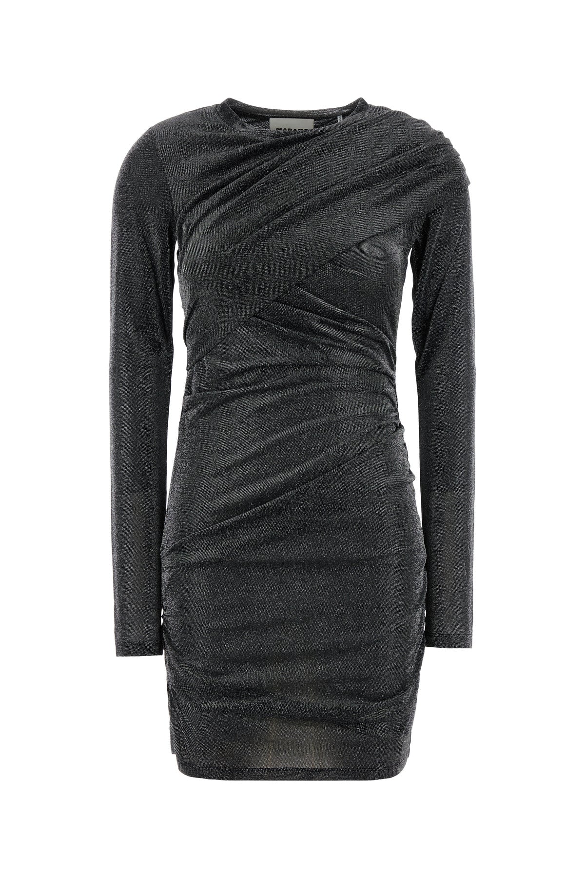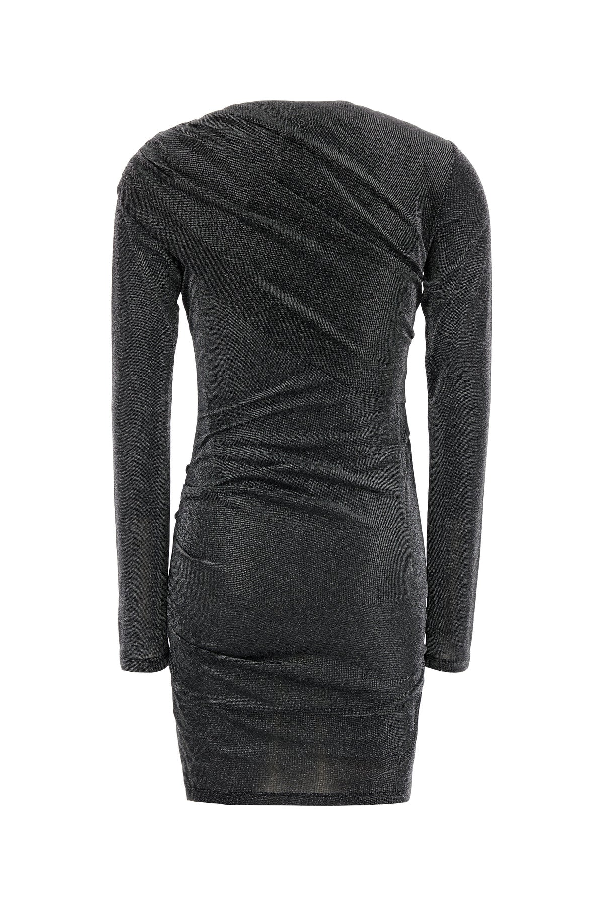 Mini dress realized in nylon blend with lurex threads characterized by drapes on the entire surface.