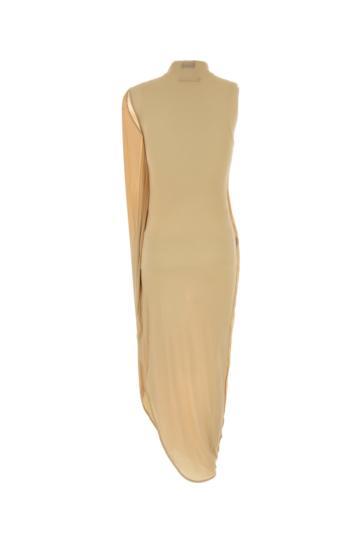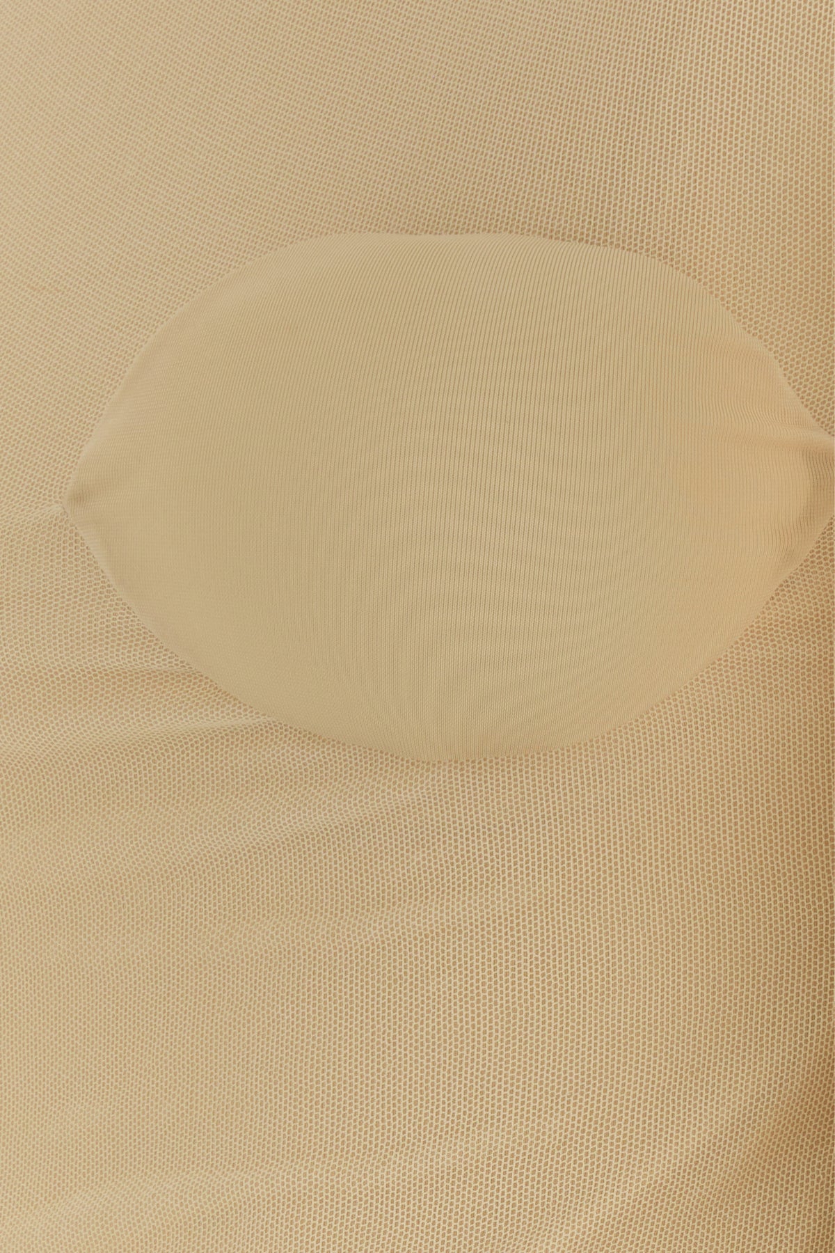 Fitted dress realized in stretch viscose with mesh insert at the front.