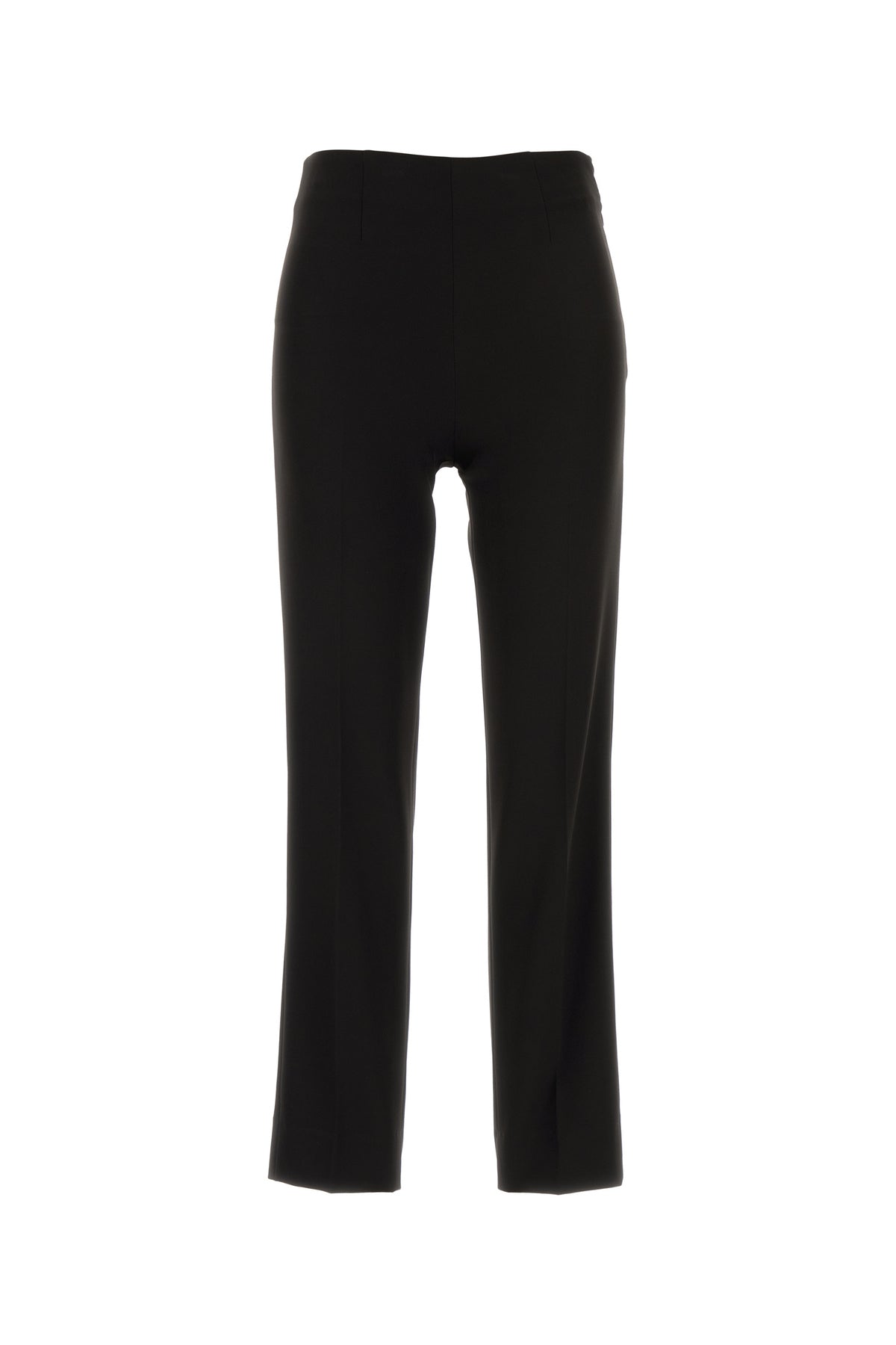 Pant realized in stretch polyester characterized by central ironed pleats.