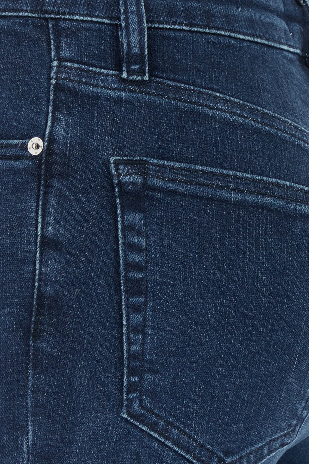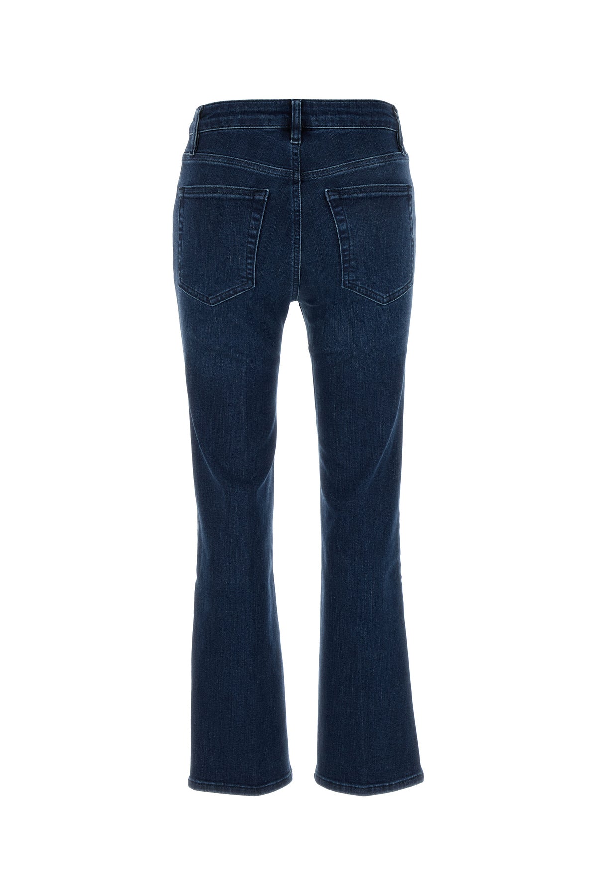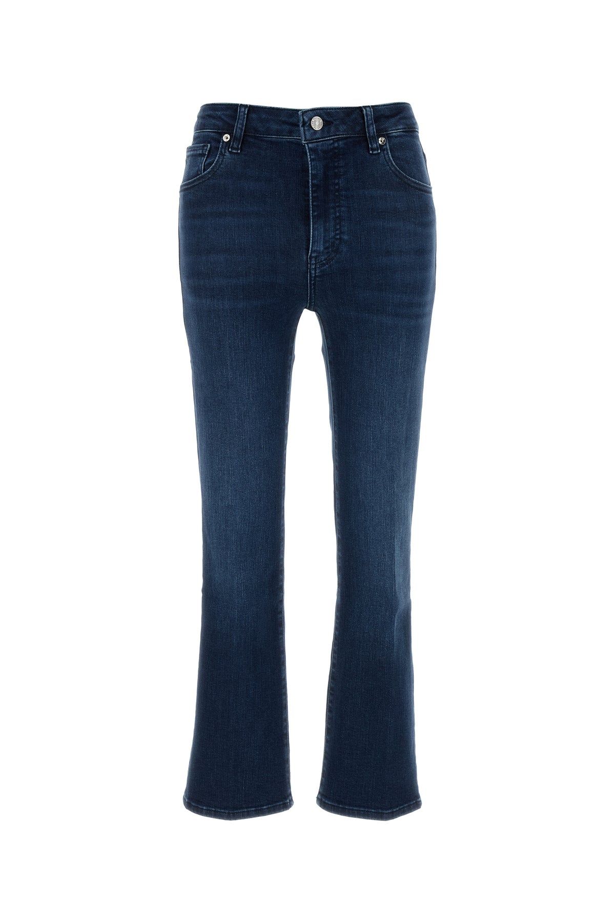 Jeans realized in stonewashed stretch denim characterized by central ironed pleats.