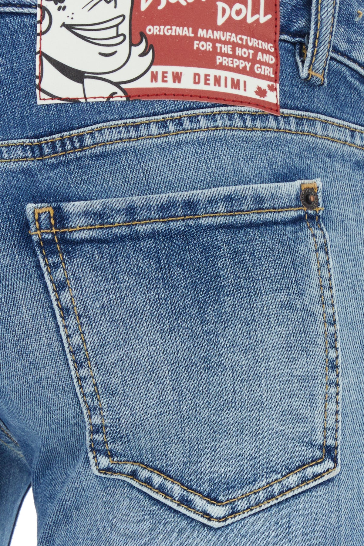 Skinny jeans realized in stonewashed stretch cotton denim with repaired rips enriched by logoed label at the back.