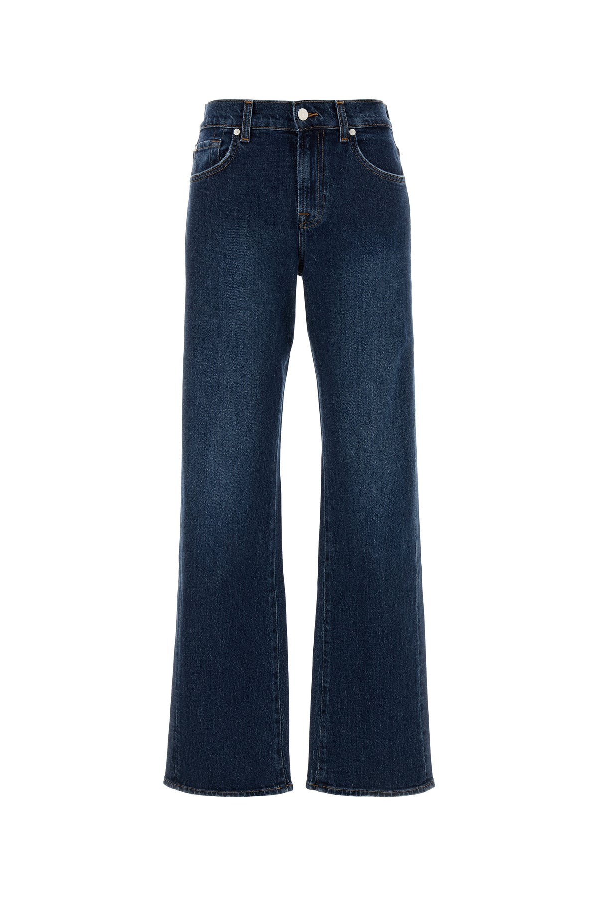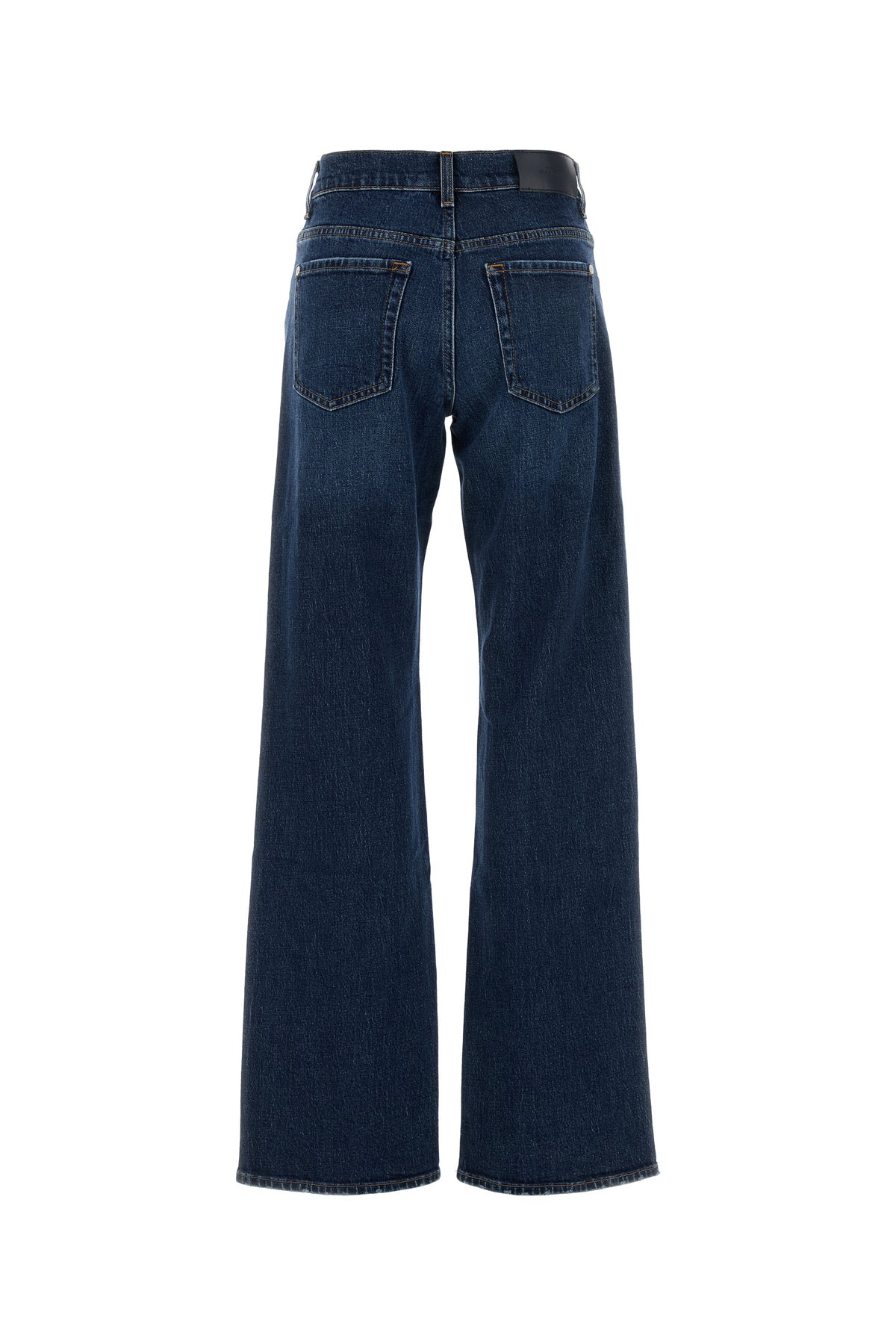 Jeans realized in stretch cotton denim enriched by contrasting logoed label at the back.