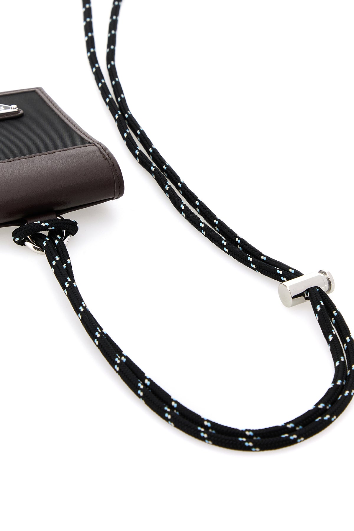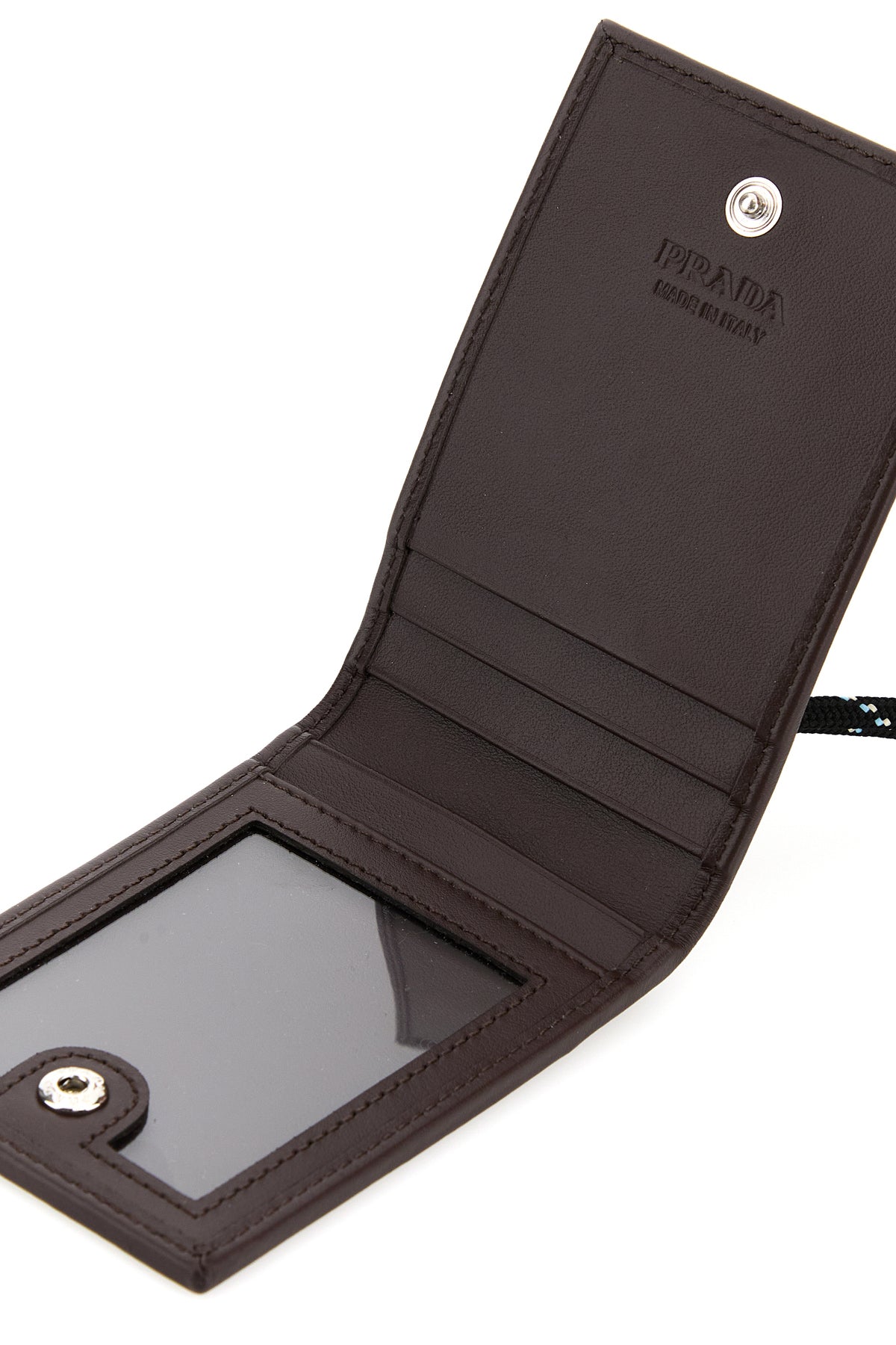 Card holder realized in canvas and leather enriched by iconic logoed metal triangle at the front.