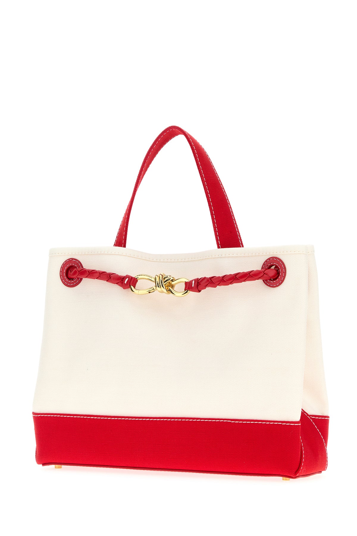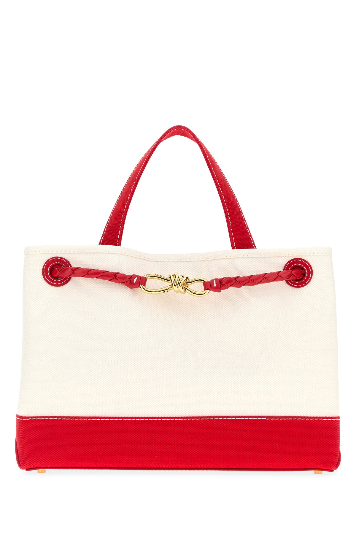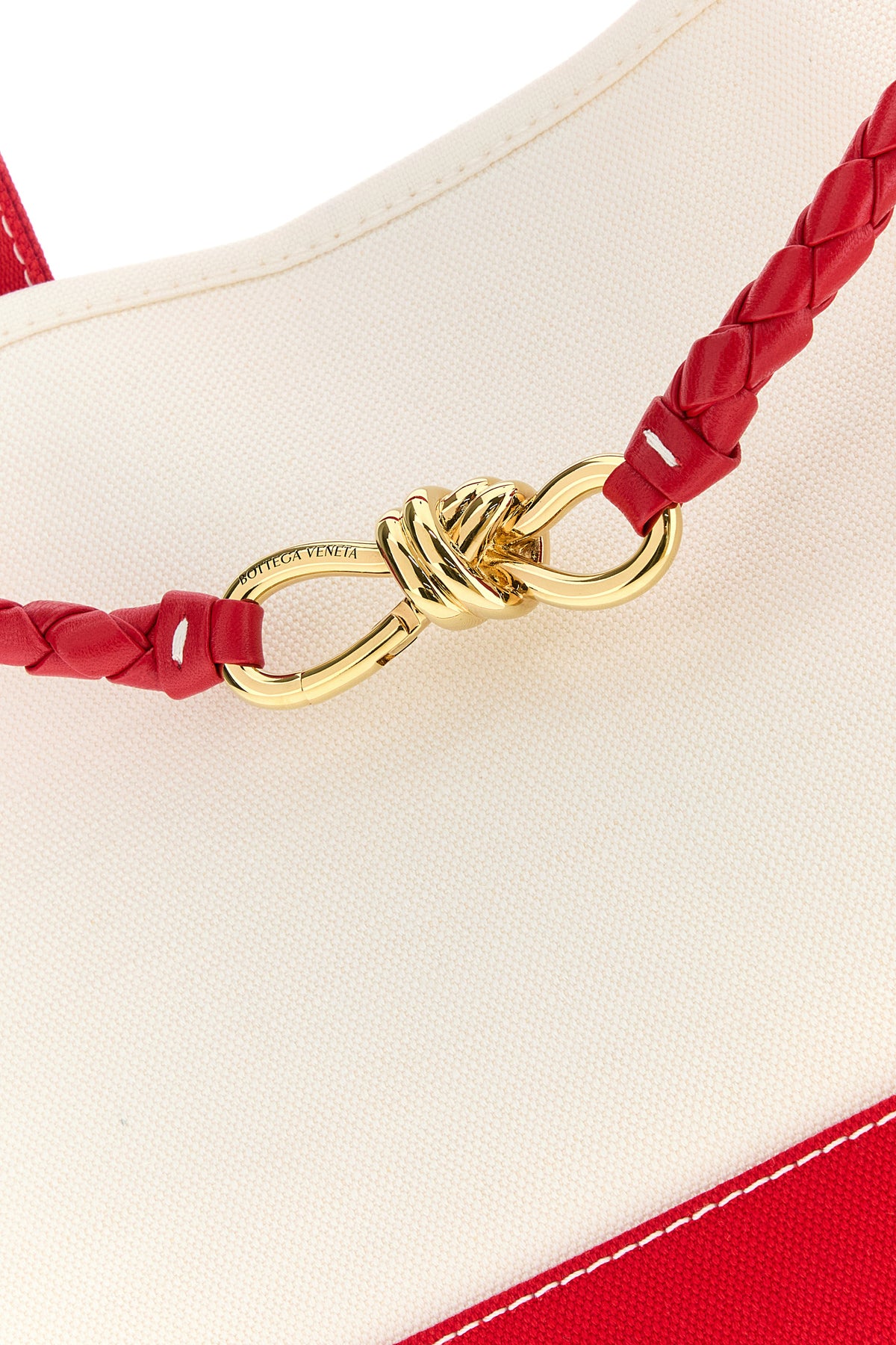 Handbag realized in canvas enriched by Knot metal detail at the front.
