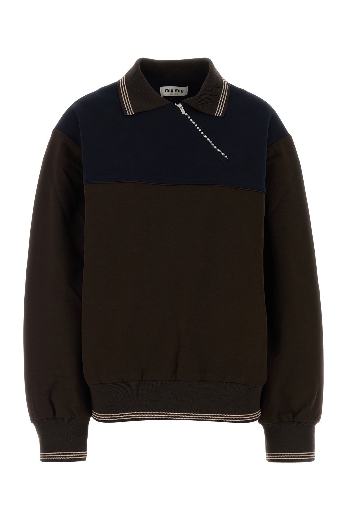 Oversize sweatshirt realized in viscose blend enriched by logoed patch at the back and contrasting bands on the trimmings.