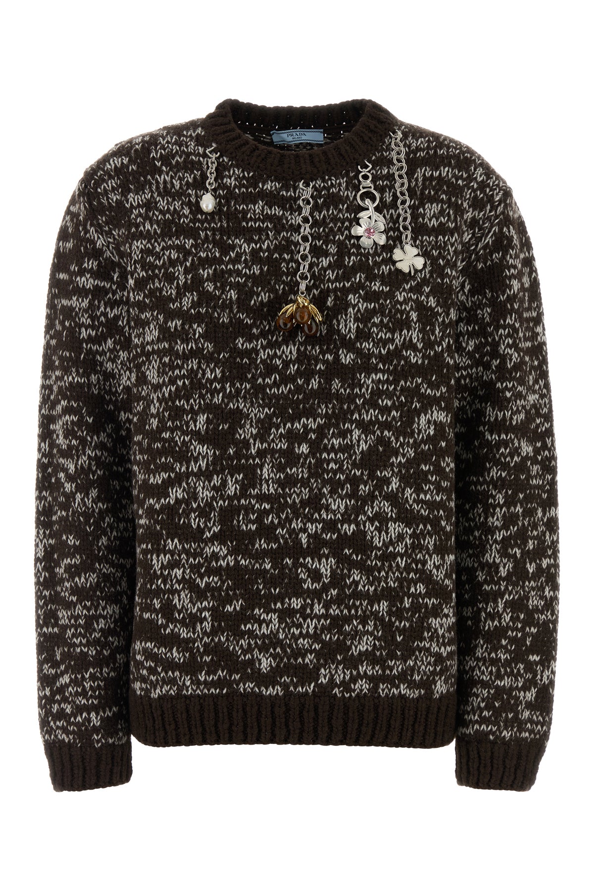 Oversize sweater realized in pure virgin wool enriched by floral metal details on the crew-neck.